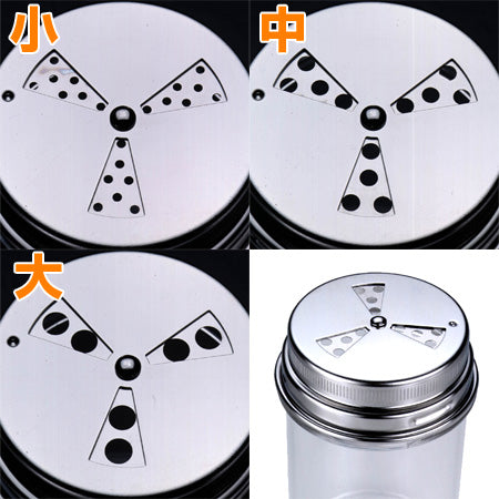 大中小の穴で分量調節ができる、中身の見える透明な調味料入れ!