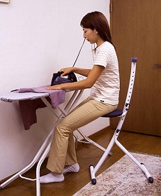 スタンド式アイロン台で作業をするときに腰掛けるのに理想的。