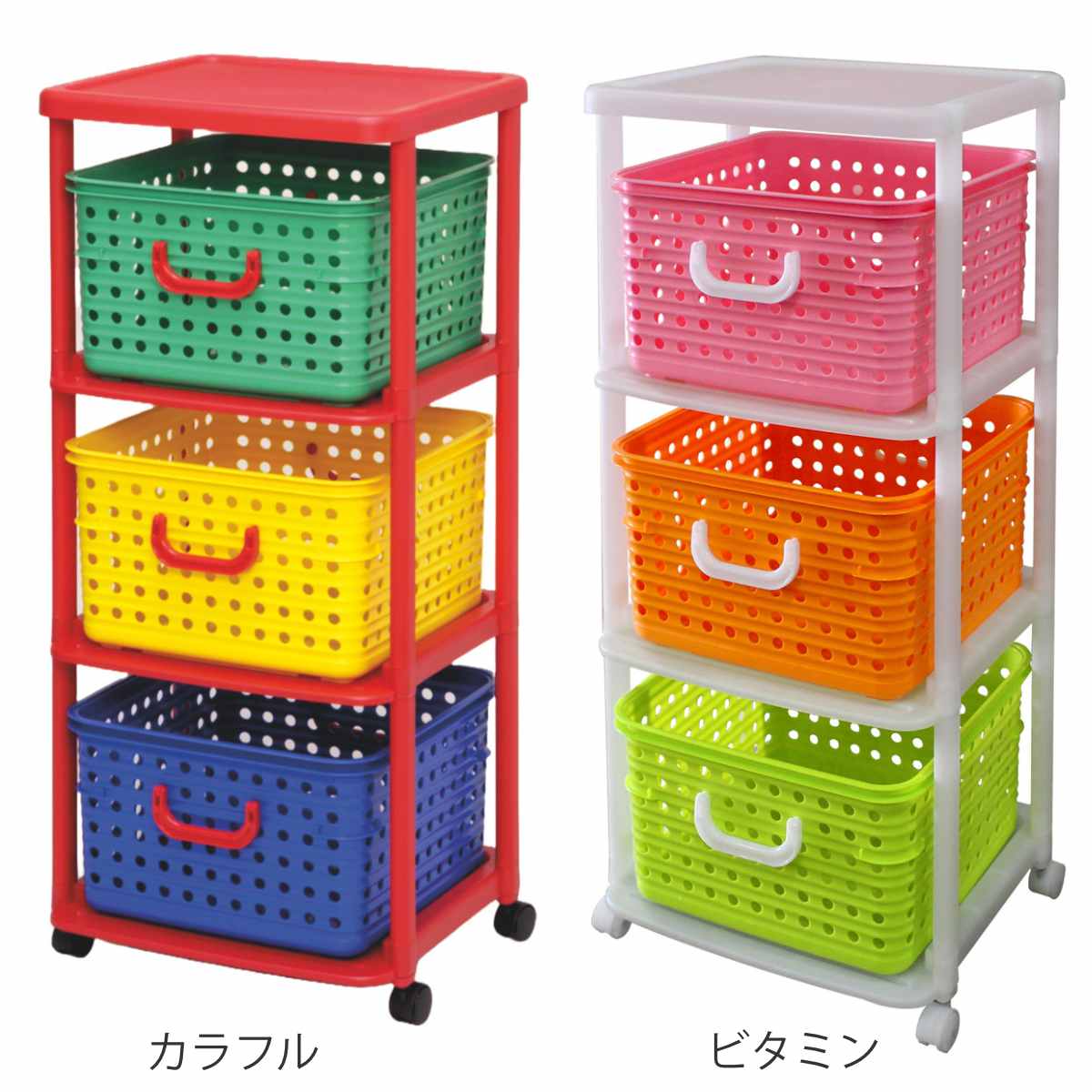 おもちゃ箱 幅44cm バスケットラック 3段 キャスター付き バスケット