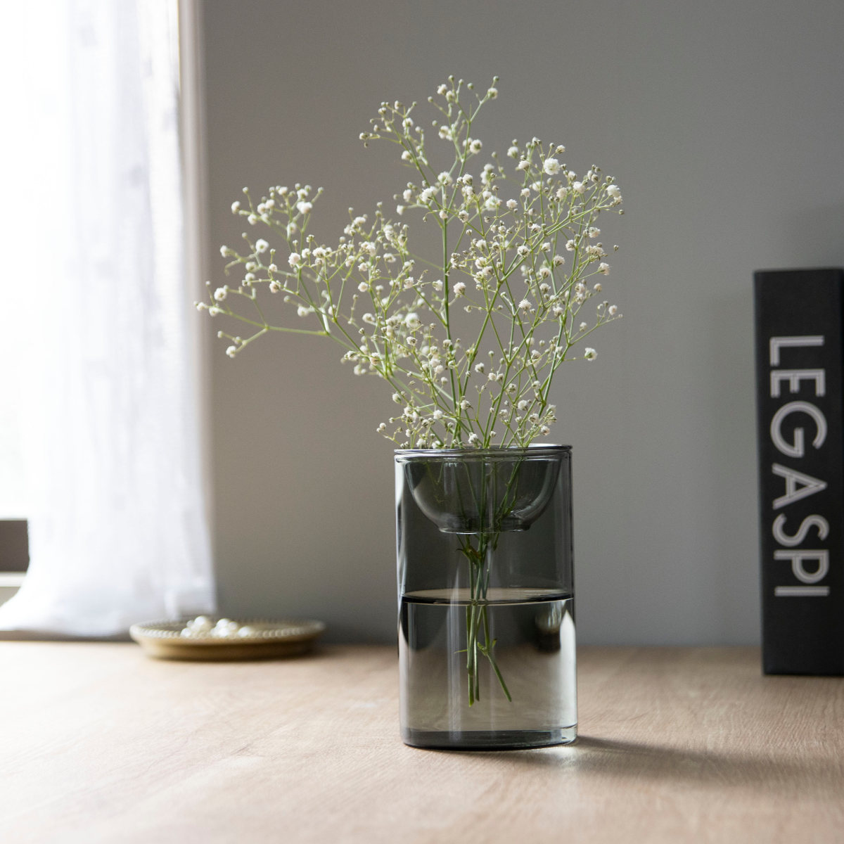 透明感のあるガラスとシンプルなフォルムはどんな空間にも溶け込みます。シリーズでサイズ違いや色違いをいくつか並べると統一感のある空間になります。