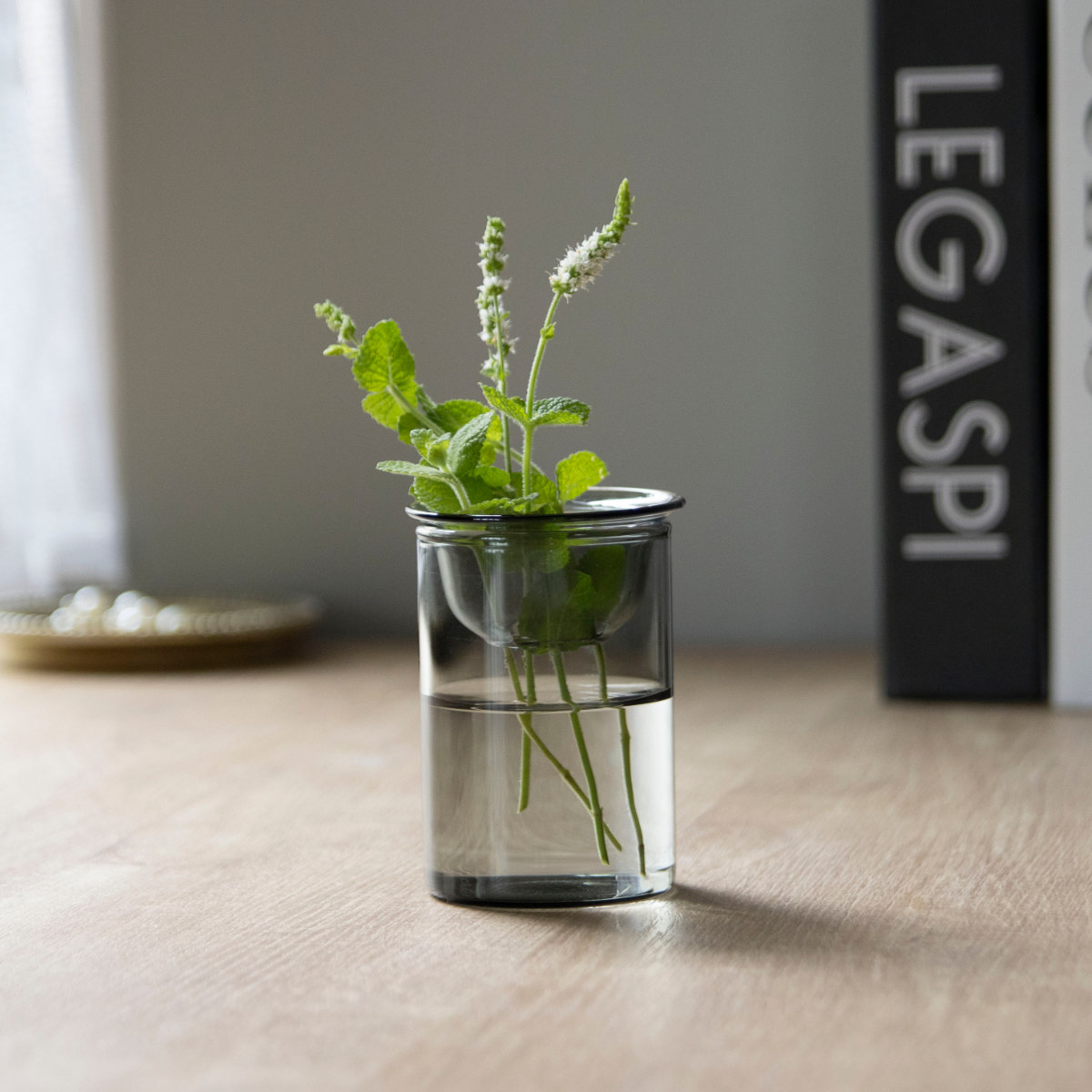 透明感のあるガラスとシンプルなフォルムはどんな空間にも溶け込みます。シリーズでサイズ違いや色違いをいくつか並べると統一感のある空間になります。