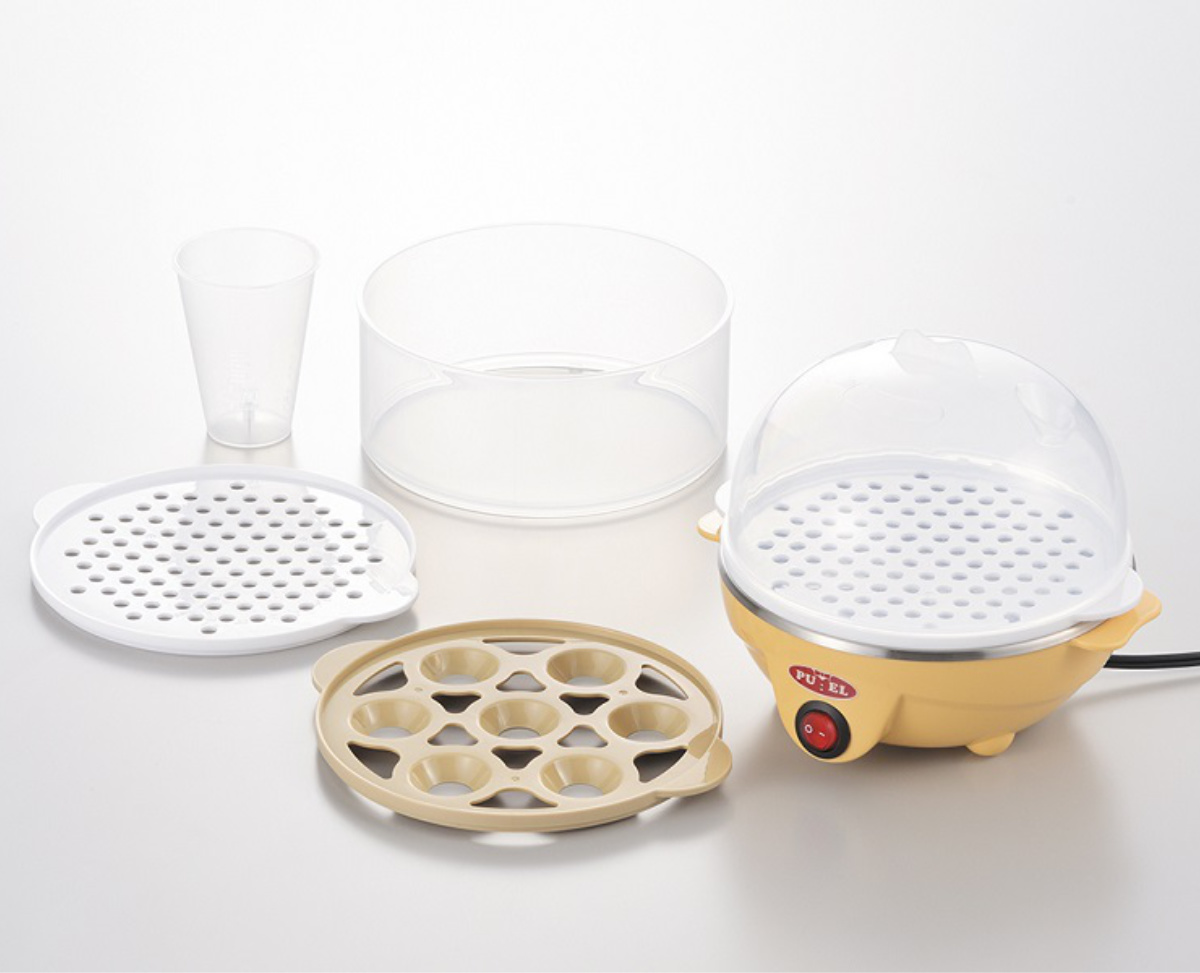 ●ゆで卵や蒸し料理が作れる、電気二段蒸し器です。