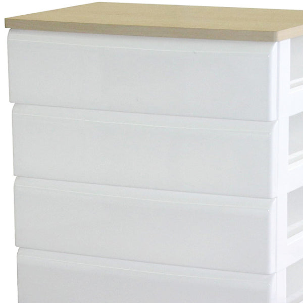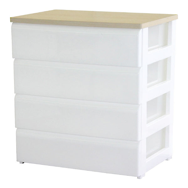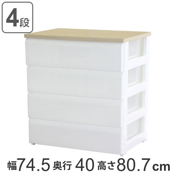 引き出しの取っ手が隠された、シンプルでスタイリッシュなチェスト4段です。チェストのトップは木天板仕上げなので、リビングや寝室などの家具やインテリアに溶け込みます。押入れやクローゼットでも役立ちます。