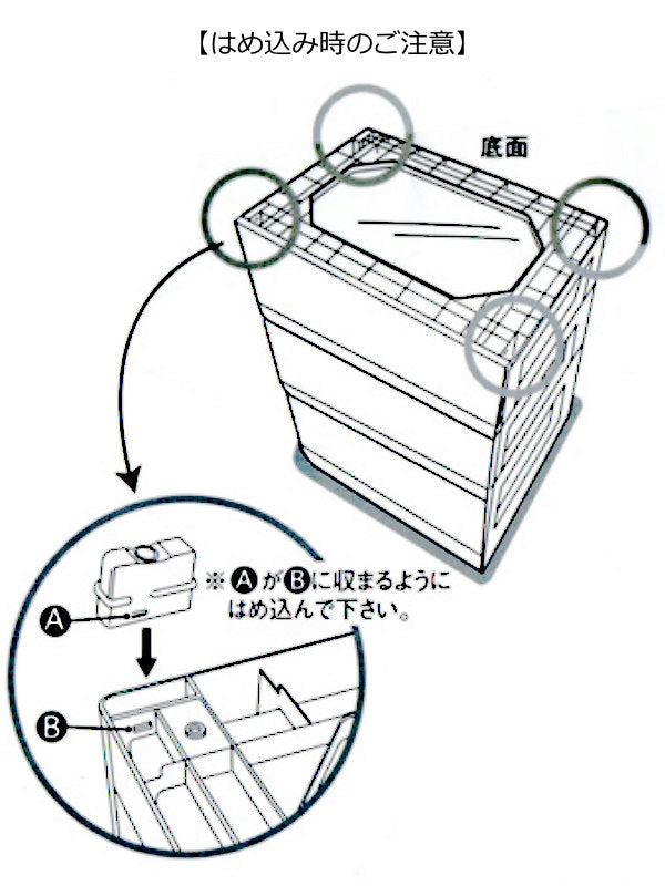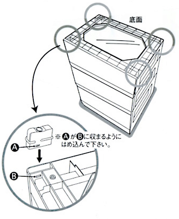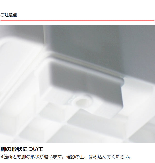 4箇所とも脚の形状が違います。確認の上、はめ込んでください。