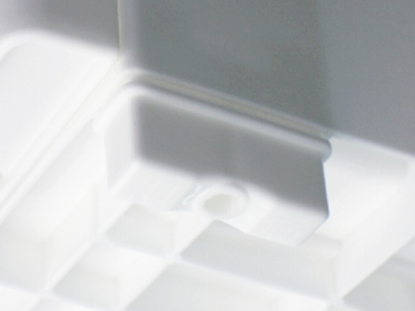 引き出しの引き手部分がパネル底に隠されたデザインで、無駄のないシンプルスタイリッシュなフォルムです。 また、引き出し底部にはラインリブを設置しているため、力を使う事なくスムーズに出し入れできます。