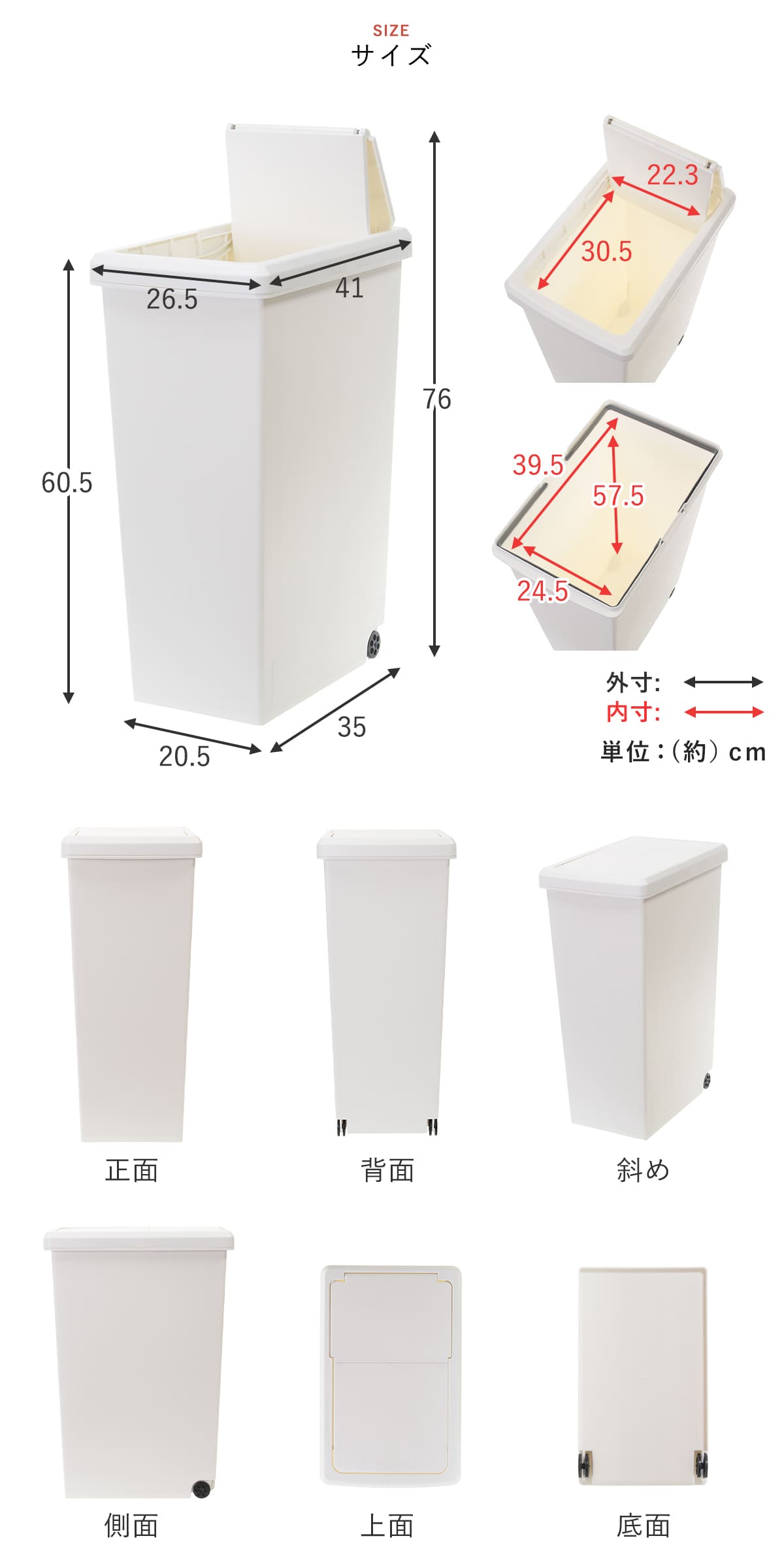 | サイズ | 約 幅26.5×奥行41×高さ60.5(cm) ふたを開けた時の高さ:約 76(cm) |