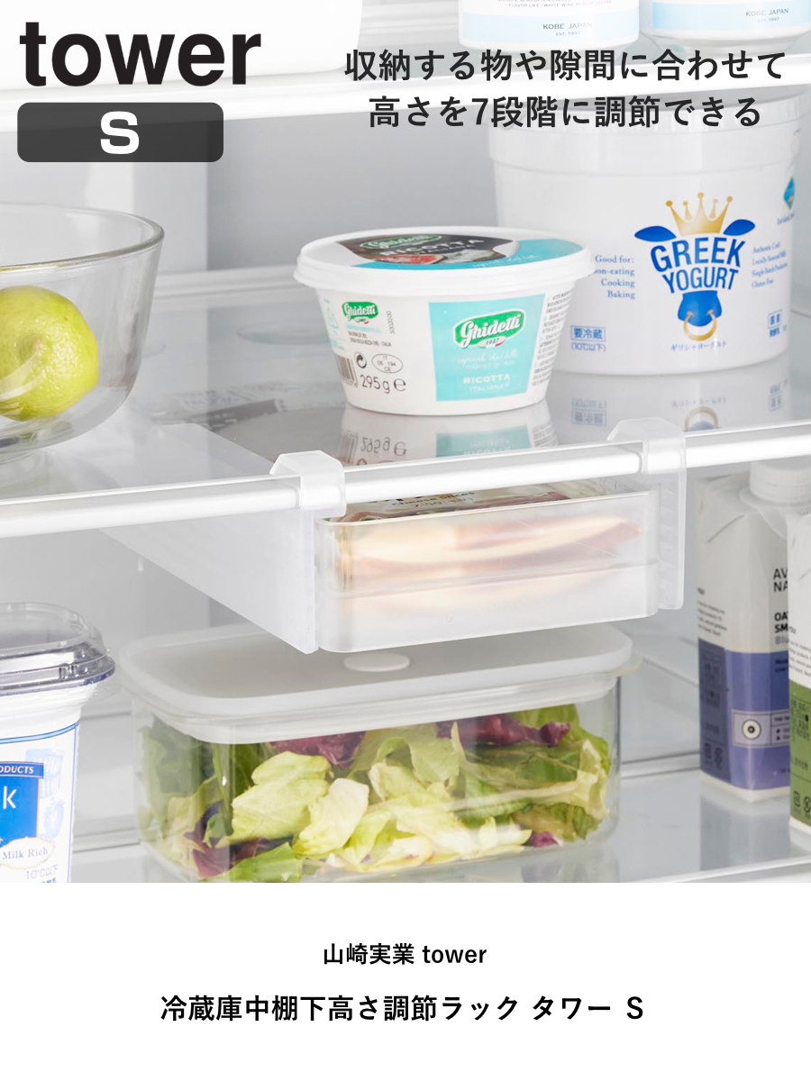 山崎実業 tower 冷蔵庫中棚下高さ調節ラック タワー S