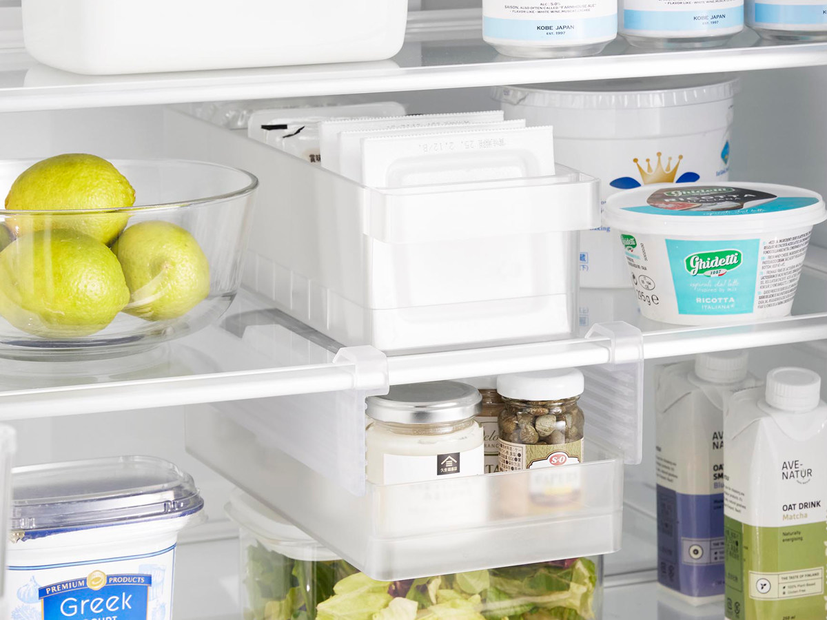 棚下収納ラックシリーズを並べて設置すると無駄な空間がなくなり、冷蔵庫の中の収納力がアップします。収納スペースを細かく分けることで食材の管理もしやすくなります。