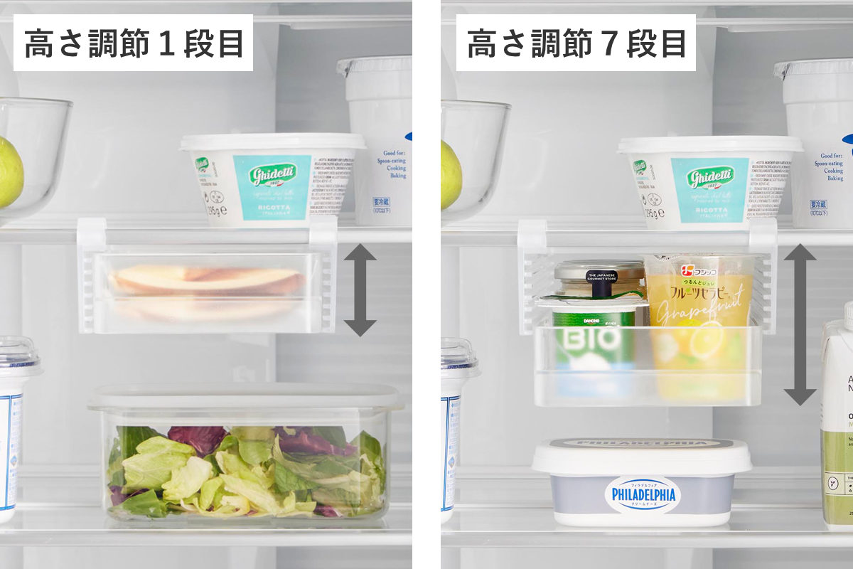ヨーグルトやゼリーなど高さのある食品の収納に。 |
