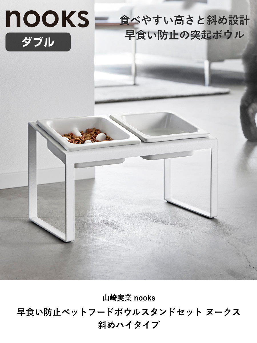 山崎実業 nooks 早食い防止ペットフードボウルスタンドセット ヌークス 斜めハイタイプ