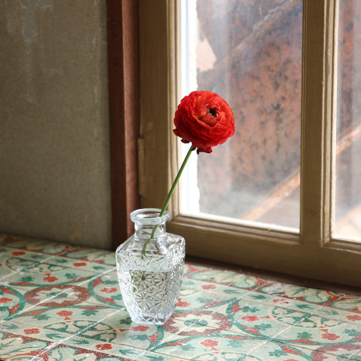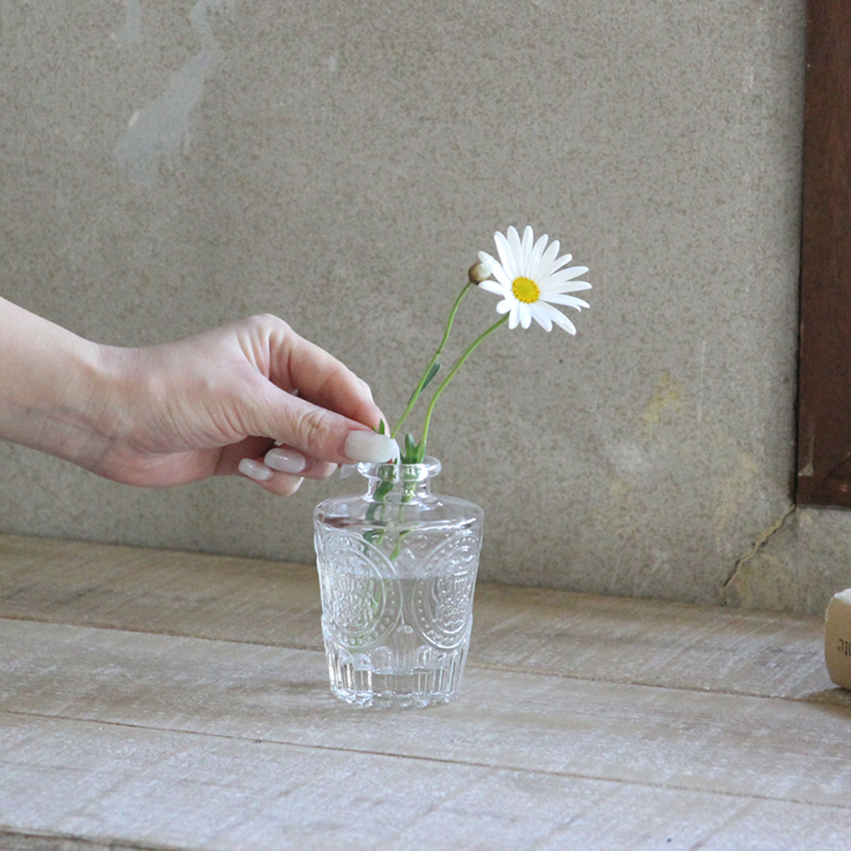 一輪の花をやさしく引き立てる、レトロな一輪挿し クリア