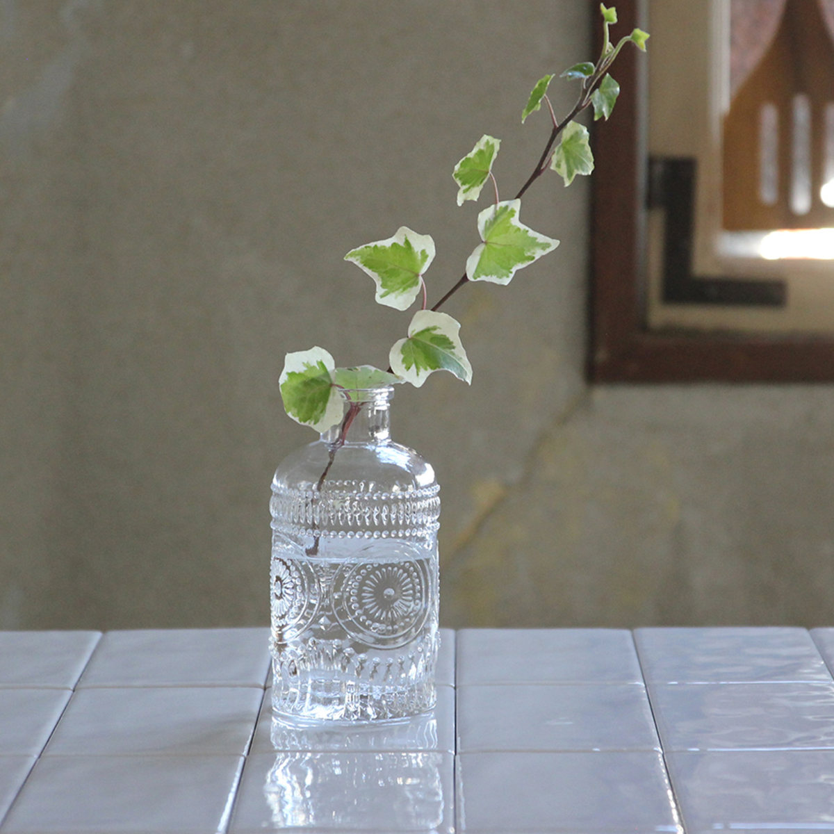 レトロな雰囲気のガラスベースシリーズ。形や模様のバリエーションが豊かで、揃えて飾れば空間に統一感とやわらかな魅力が広がります。