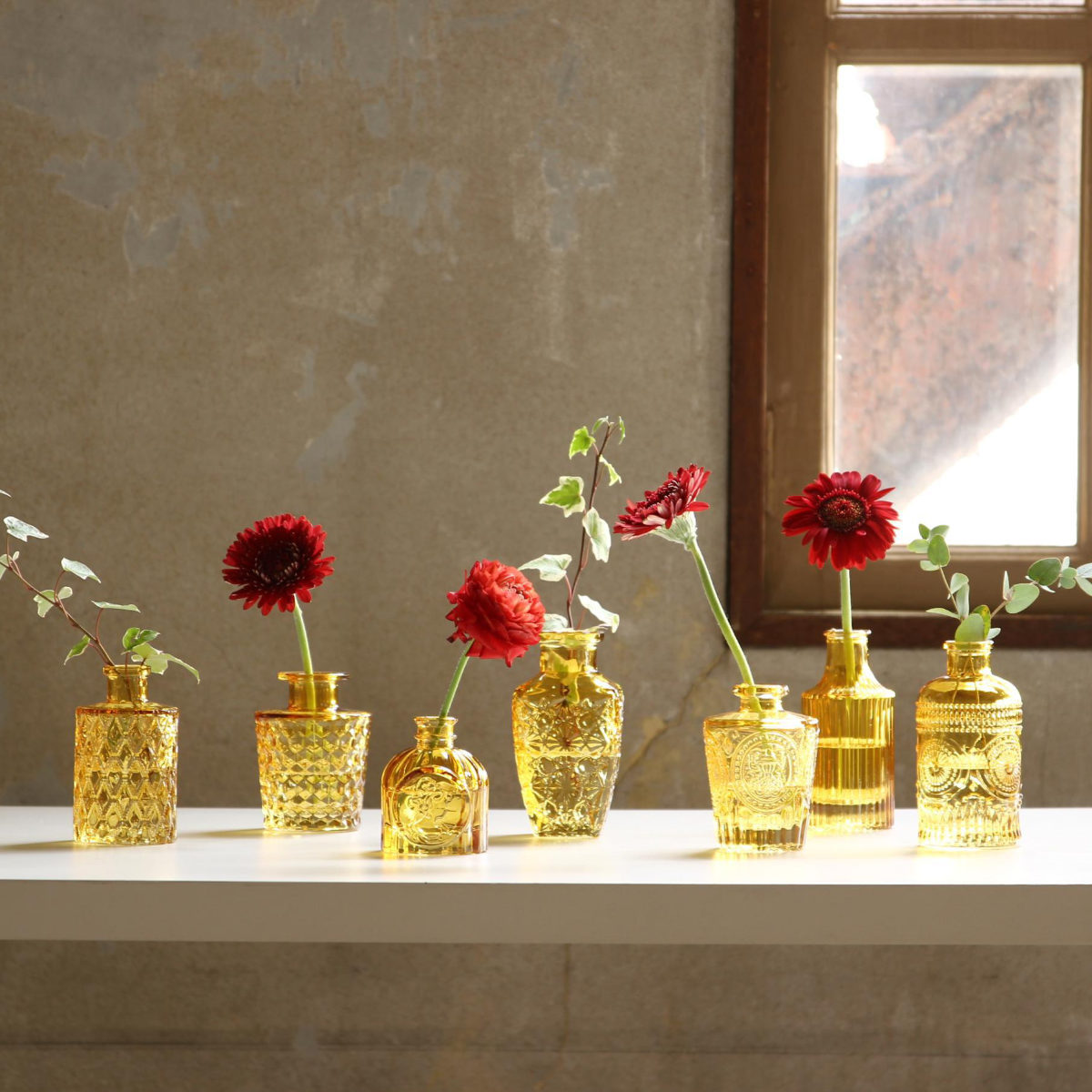 一輪の花をやさしく引き立てる、レトロな一輪挿し アンバー