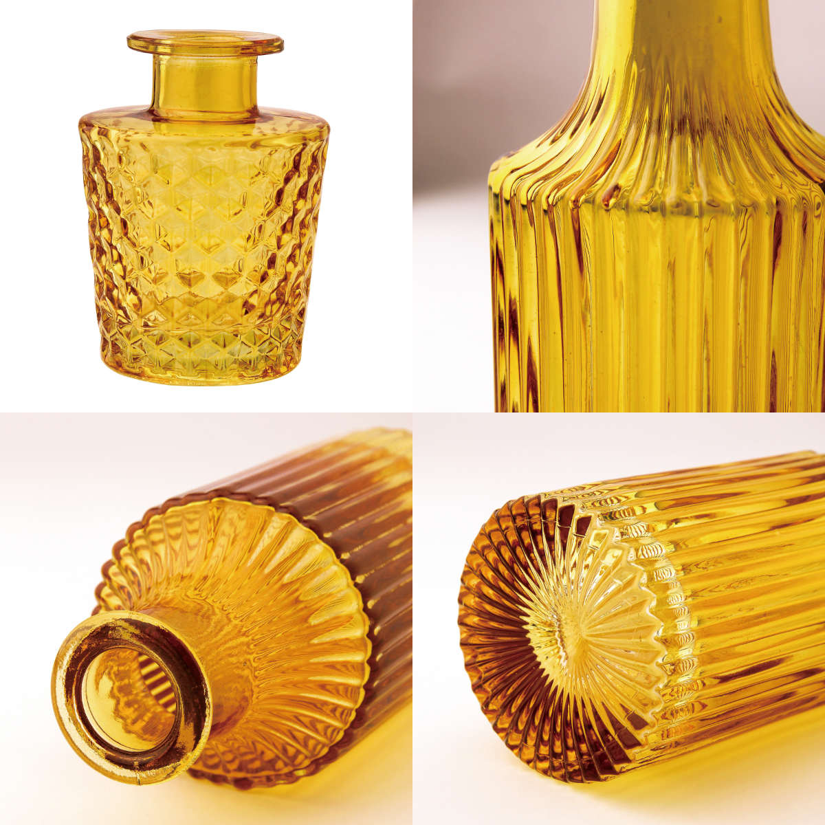 レトロな雰囲気のガラスベースシリーズ。形や模様のバリエーションが豊かで、揃えて飾れば空間に統一感とやわらかな魅力が広がります。