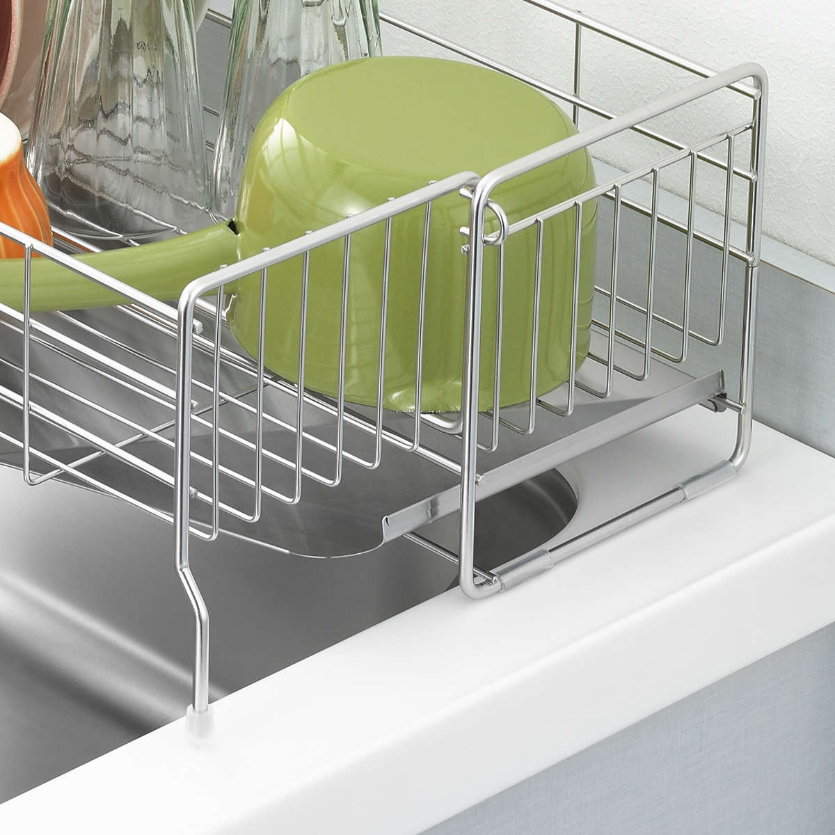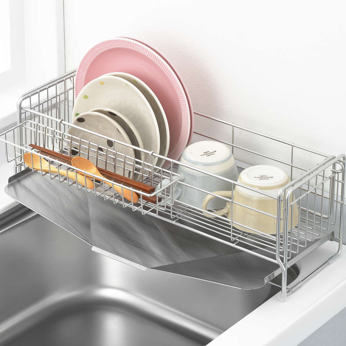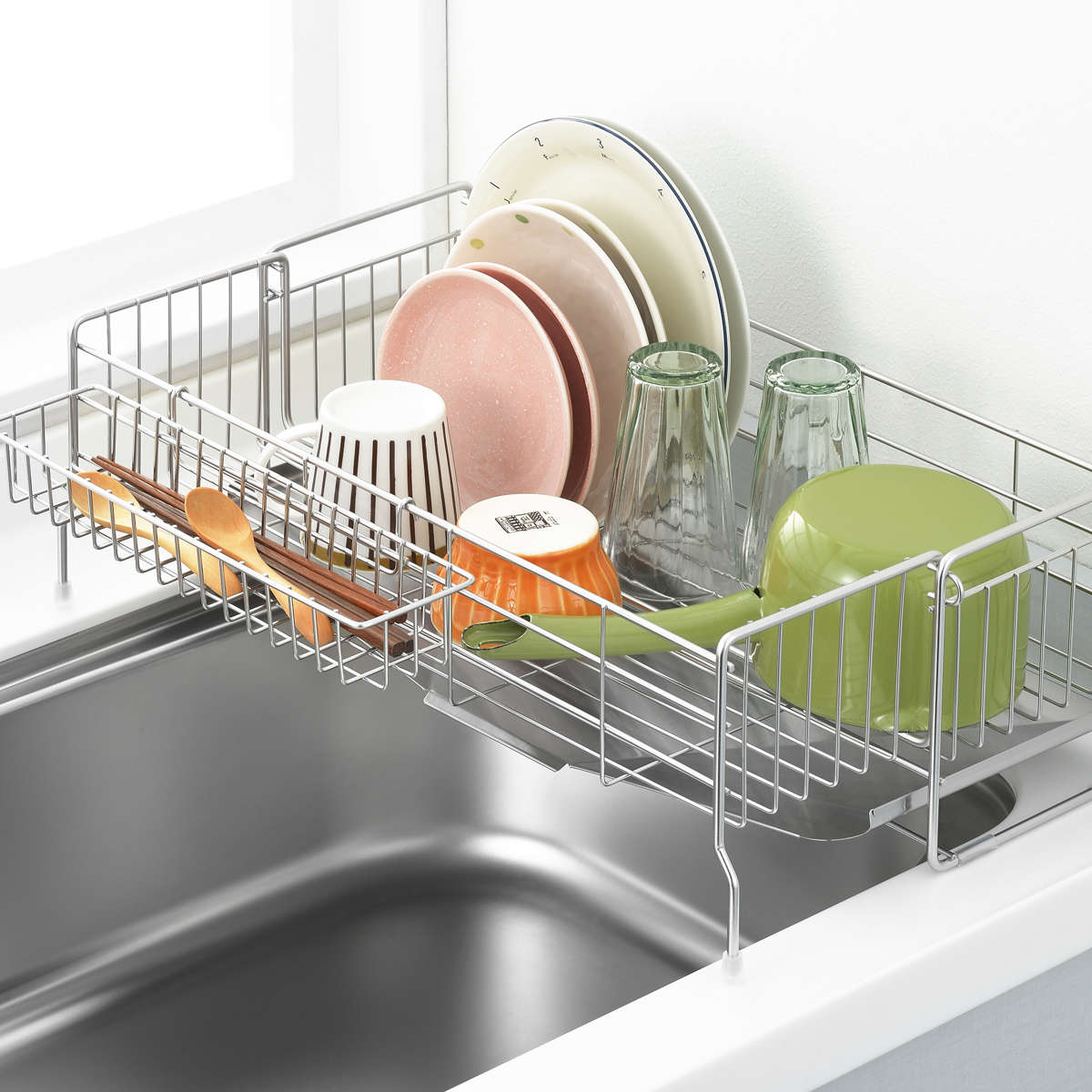 使わないときはコンパクトに、必要なときは広げて使える伸縮式の水切りラック。場所を取りがちな水切りも、サイズ調整で限られたキッチンスペースを有効活用できます。