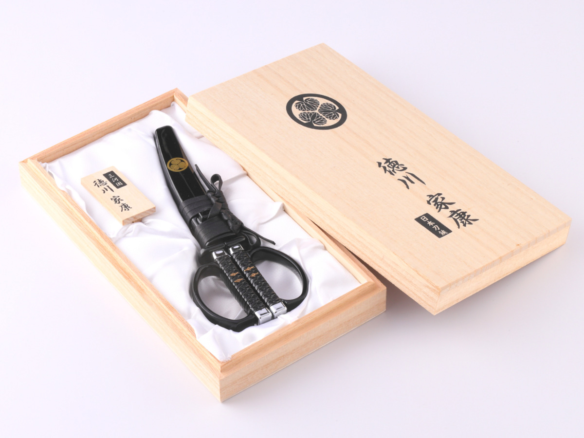 徳川家康が愛用した日本刀”ソハヤノツルキ”をモチーフにしたはさみです。刃物の町、岐阜県関市の刃物職人が1本1本丁寧に刃付けをしています。桐箱入りのため、歴史好きや刀剣好きの方へのプレゼントとしても最適です。