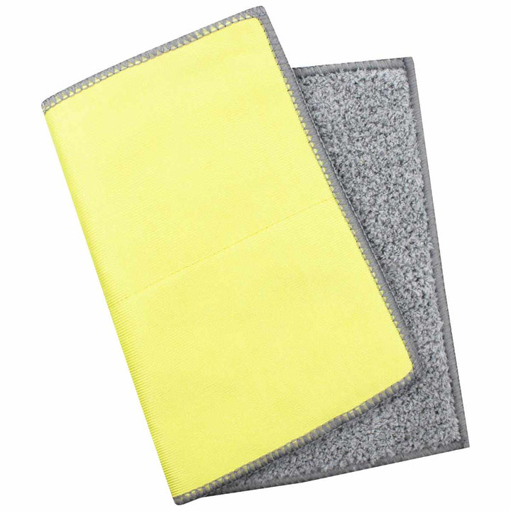 表面はブラシ繊維とマイクロファイバーで、網戸の目に入り込んだ汚れもやさしくかき出せます。裏面は吸水性に優れたマイクロファイバーで、水分をしっかり拭き取れます。