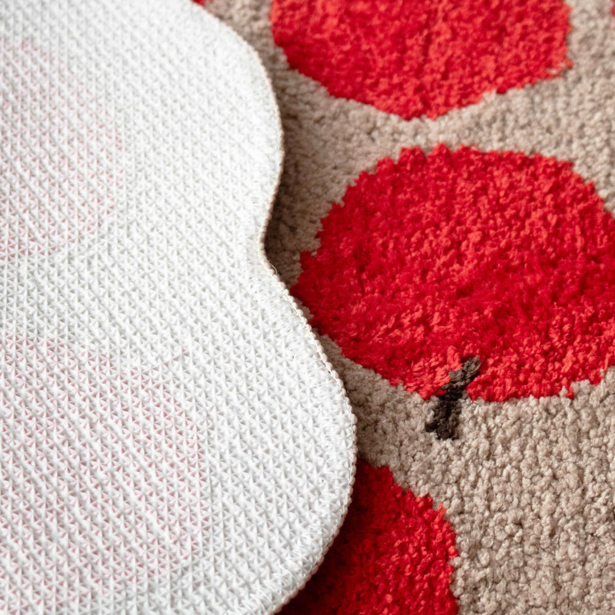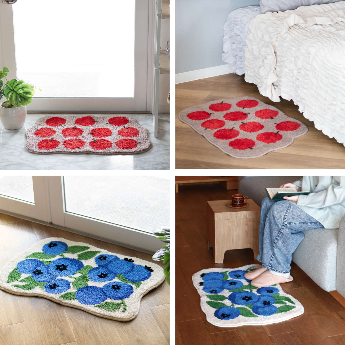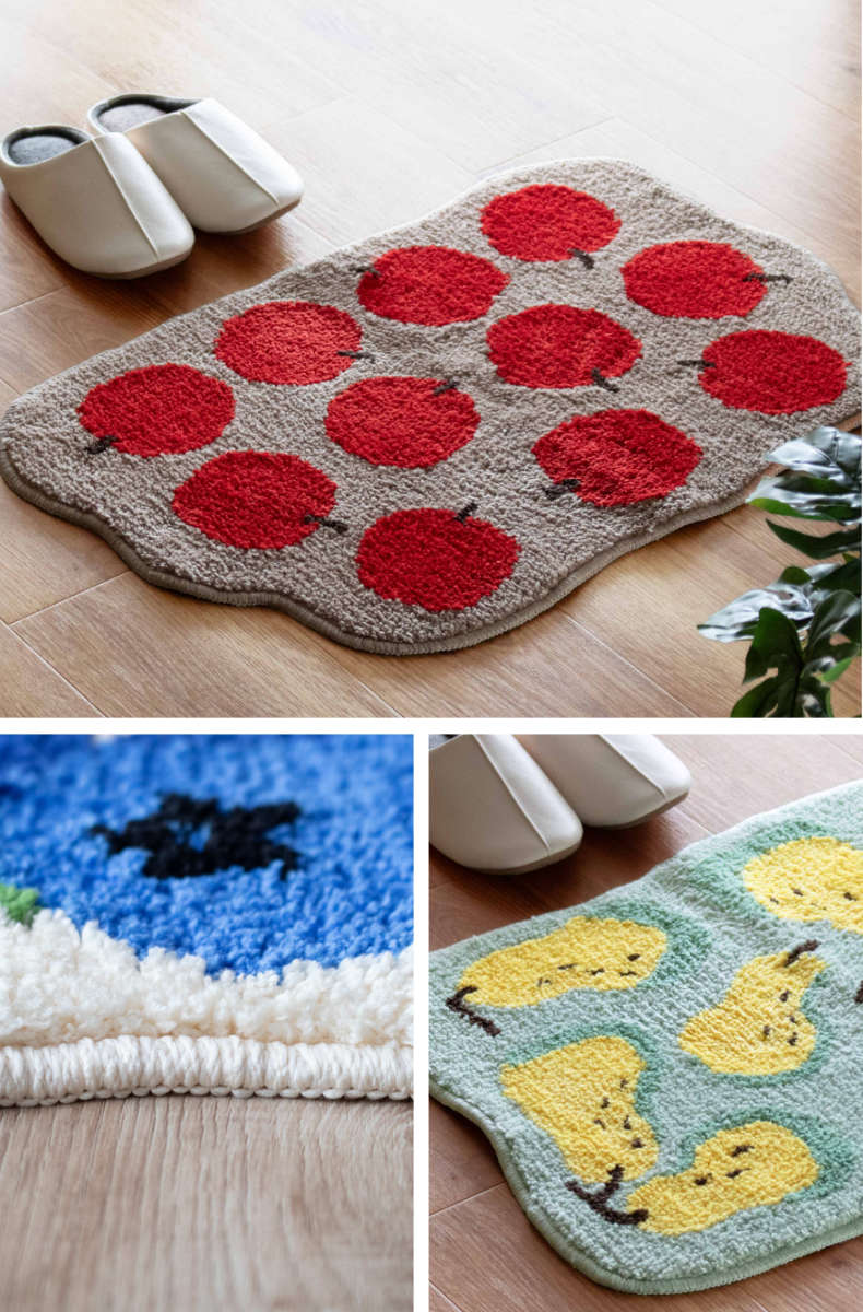 思わず食べたくなるような、フルーツがギュッと詰め込まれたデザインのフロアマットです。ふっくらとした手触りで足元を優しく包み込みながら、お部屋にちょっとした遊び心を添えてくれます。