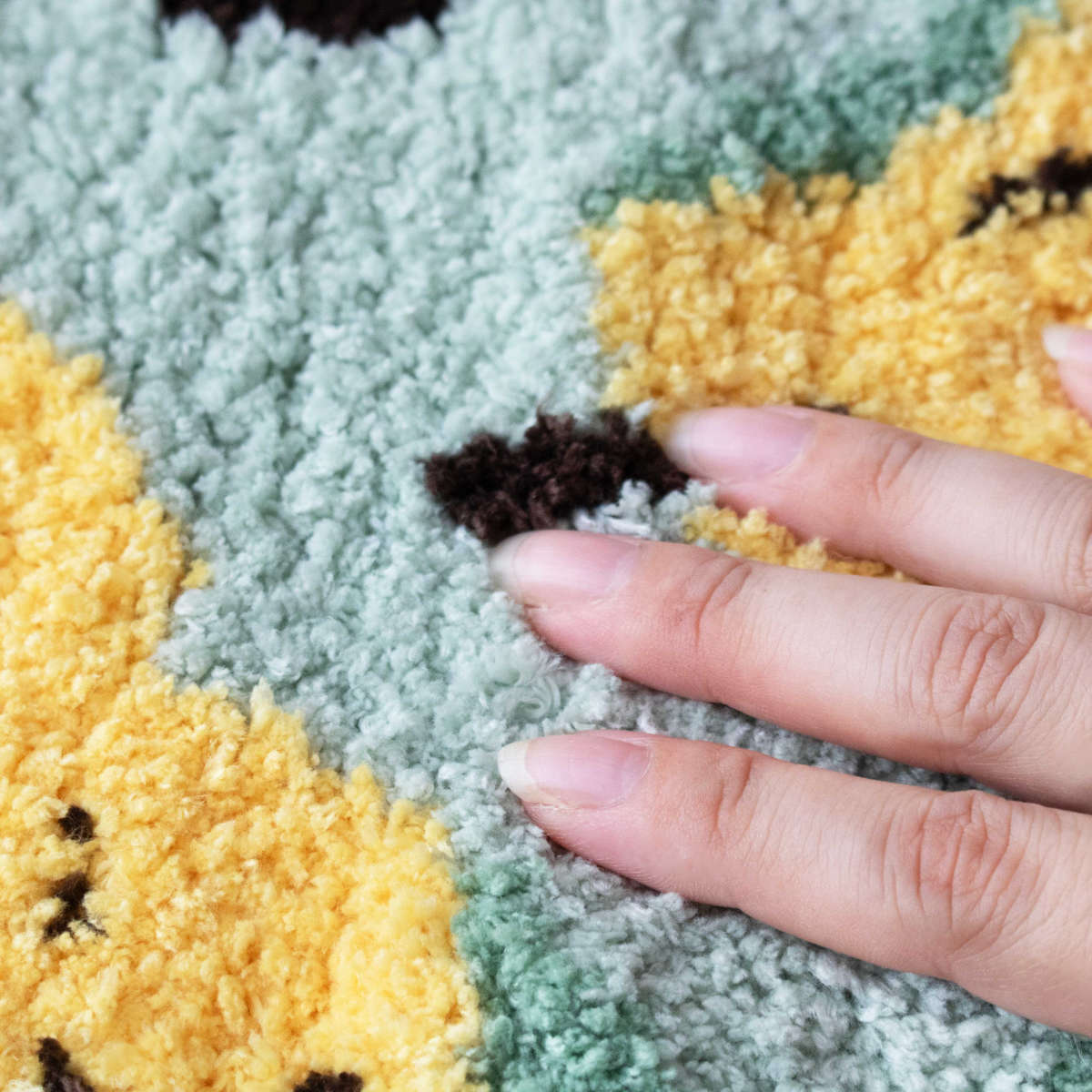 表面はタフト製法でふっくらと仕上げた、素足でも気持ち良いやさしい踏み心地が魅力です。密に織り込まれた糸がふわっと包み込みます。