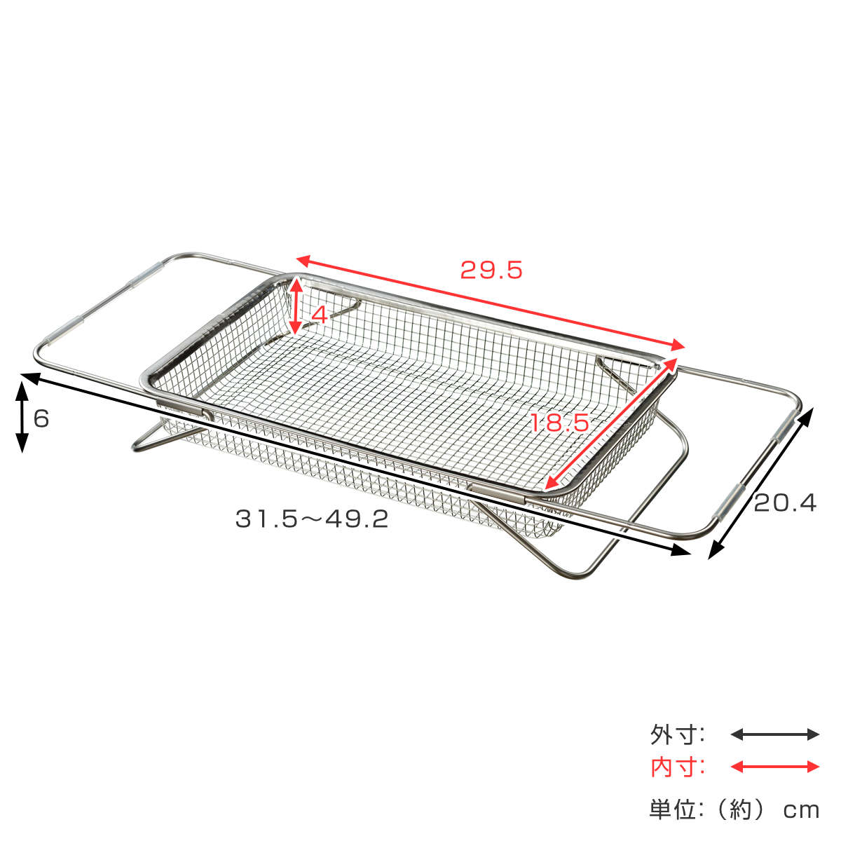 | サイズ | 約 幅20.4×奥行31.5~49.2×高さ6(cm) かご内寸:約 幅18.5×奥行29.5×4(cm) |