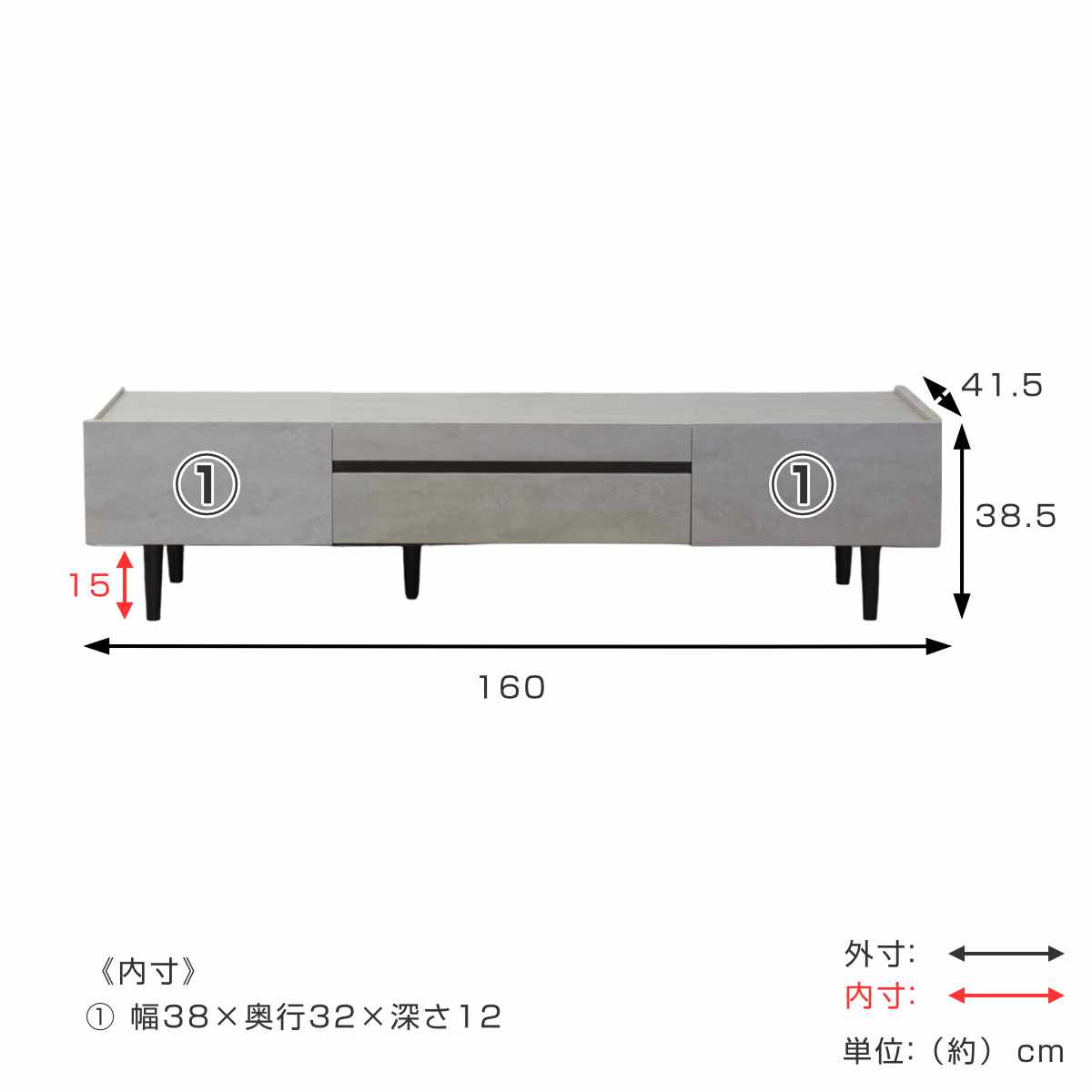 | サイズ | 約 幅160×奥行41.5×高さ38.5(cm) |