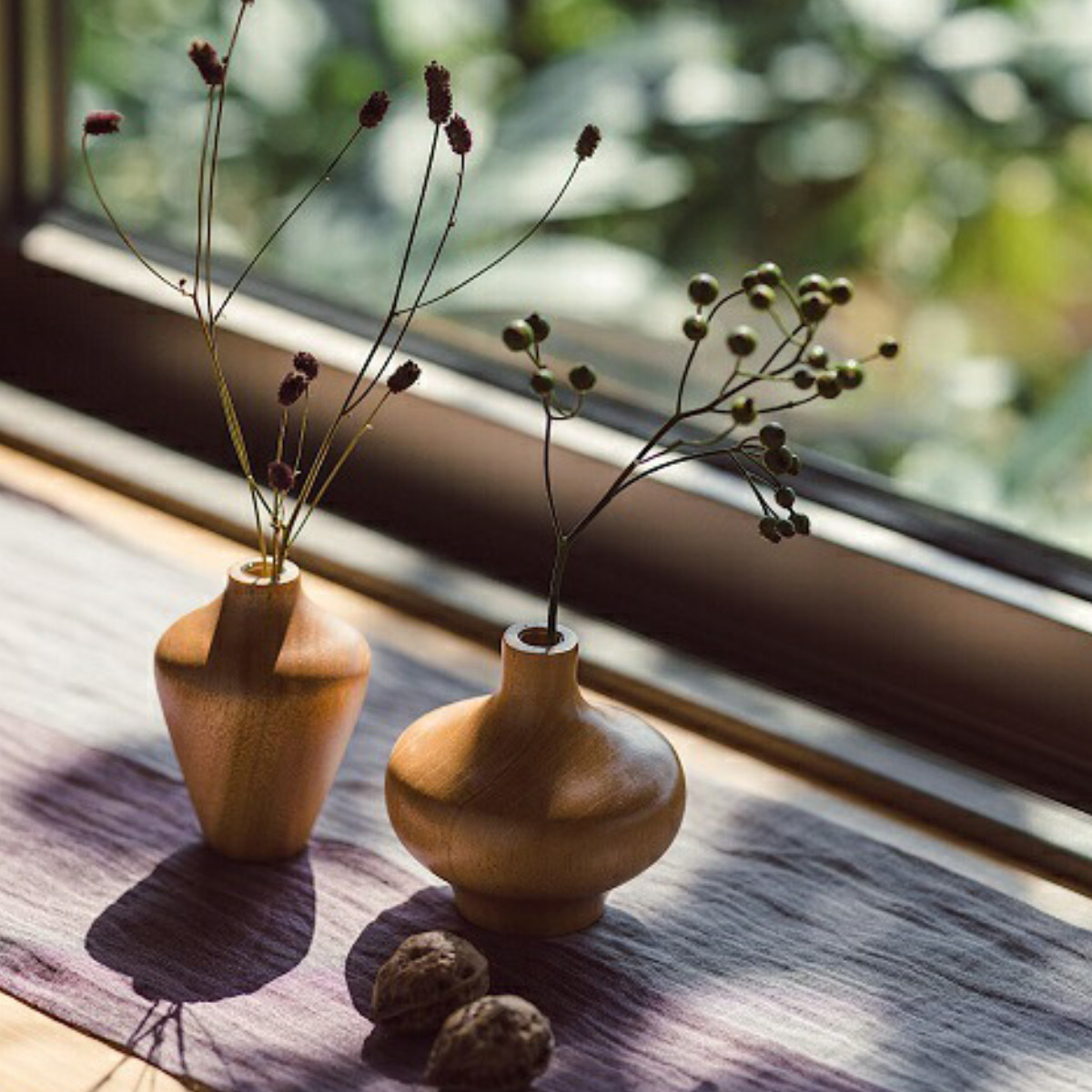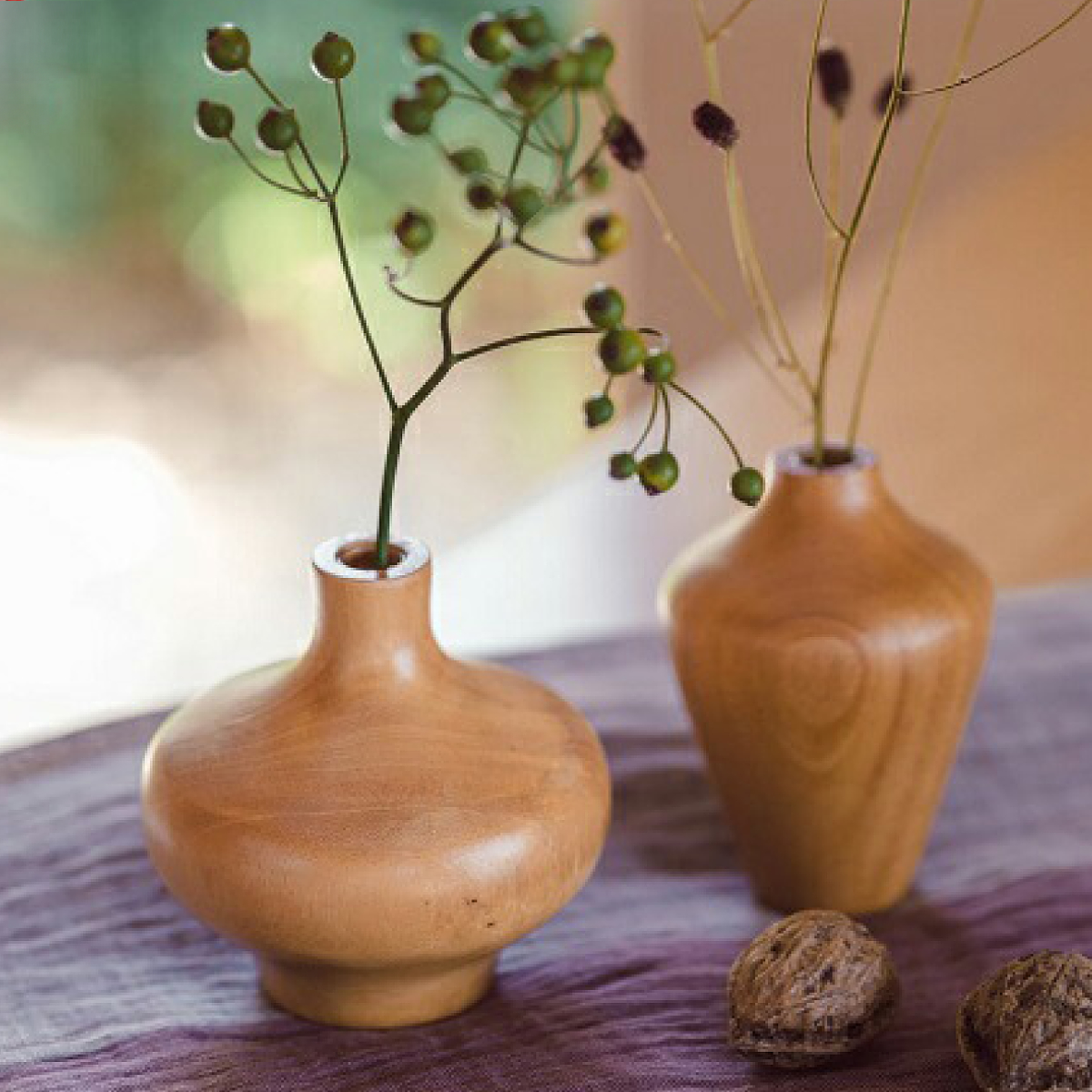 活けた花を引き立てる自然な色合いと美しい木目が特長です。飾るインテリアを選ばず、小さな草花を美しく魅せます。
