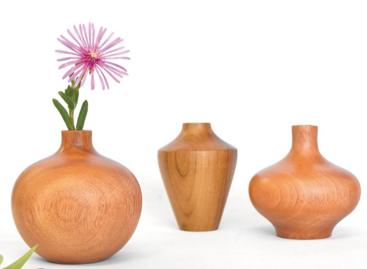 木のぬくもりを感じるやさしいデザインの花瓶「KAKI」