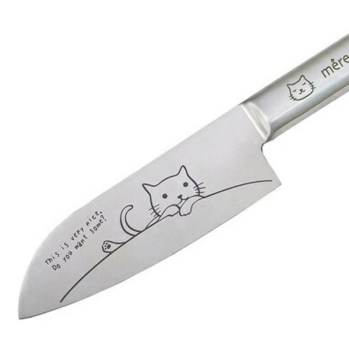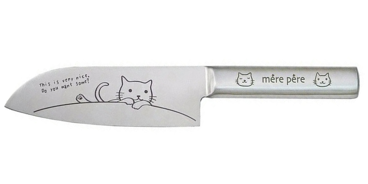 ネコのイラスト入り小三徳包丁 14cm
