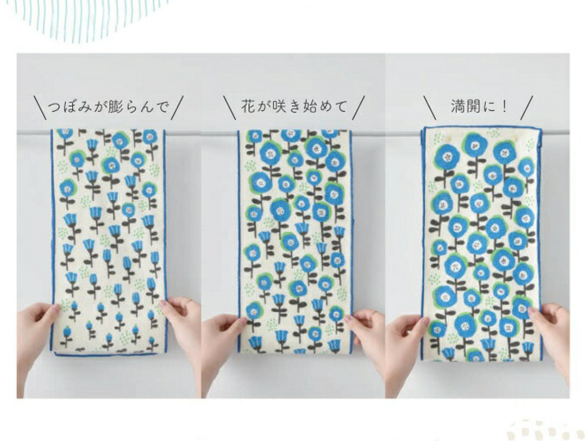 ●手を拭くたびにお花が咲いていく、見て楽しいループタオルです。