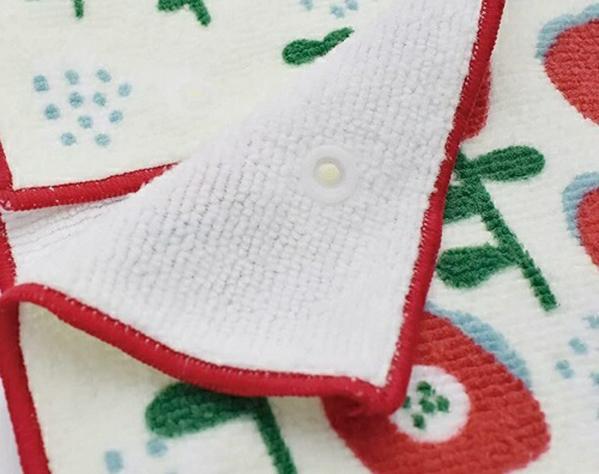 スナップボタンが2か所についているので、タオルがズレ落ちません。
