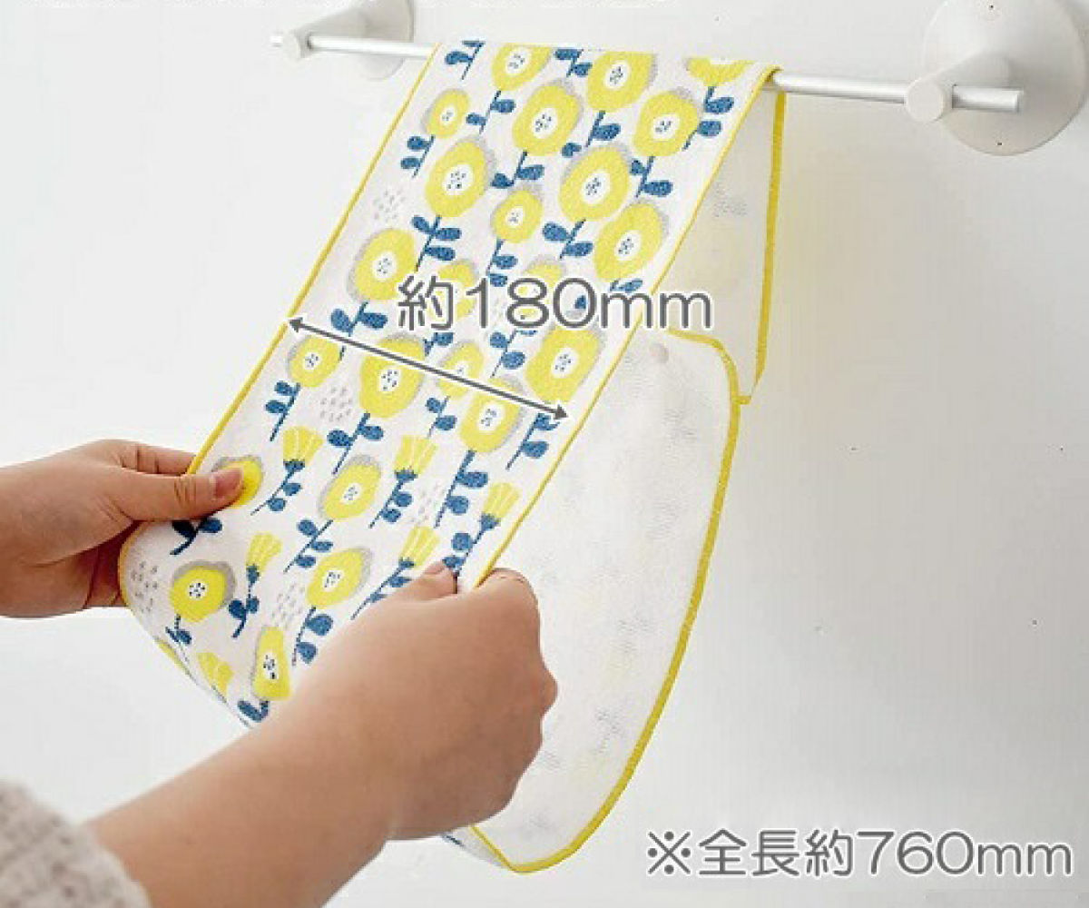 手を拭くたびにお花が咲いていく、見て楽しいループタオルです。濡れたらタオルをクルッと回せば、いつでも乾いた面で手を拭けるので快適です。パッと目を引く鮮やかなカラーの北欧テキスタイルで、空間に明るく彩りを与えてくれます。