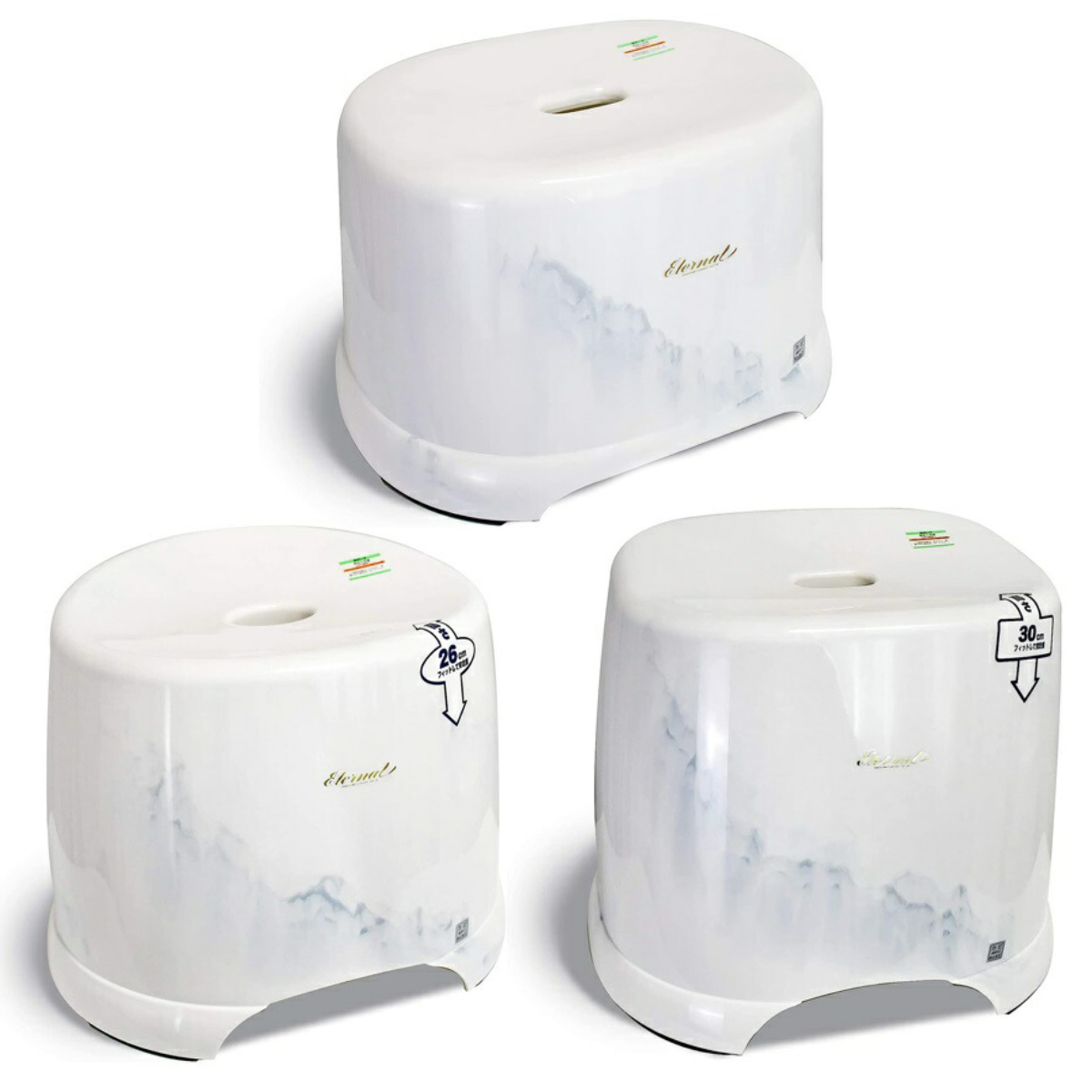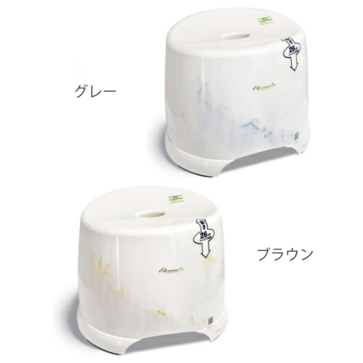 高級感のある大理石調マーブル模様の風呂椅子です。浴室にホテルライクな上質さを演出してくれます。お子様と兼用したいご家庭におすすめの座面高さ約26cmです。