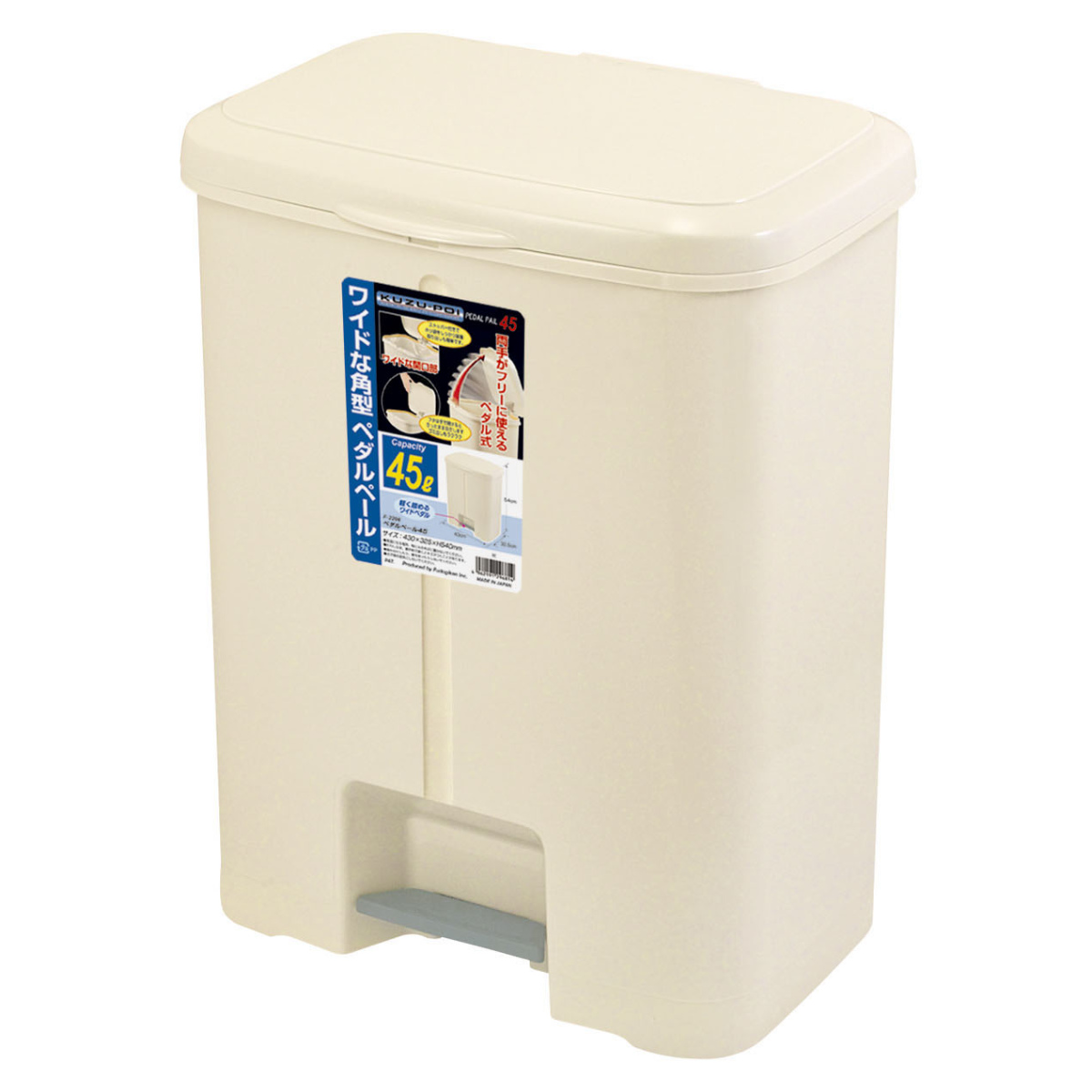 ペダルを踏んで開ける容量45Lのフットペダル式ゴミ箱です。手を使わずにゴミ箱を開けることができるので忙しい調理中にとても便利です。