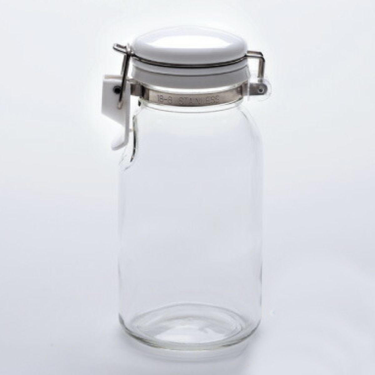 ストッパー付きのキャップを採用し、片手でもポンと開け閉めできます。ガラス製なのでにおいや色移りがしにくく、清潔に使えます。