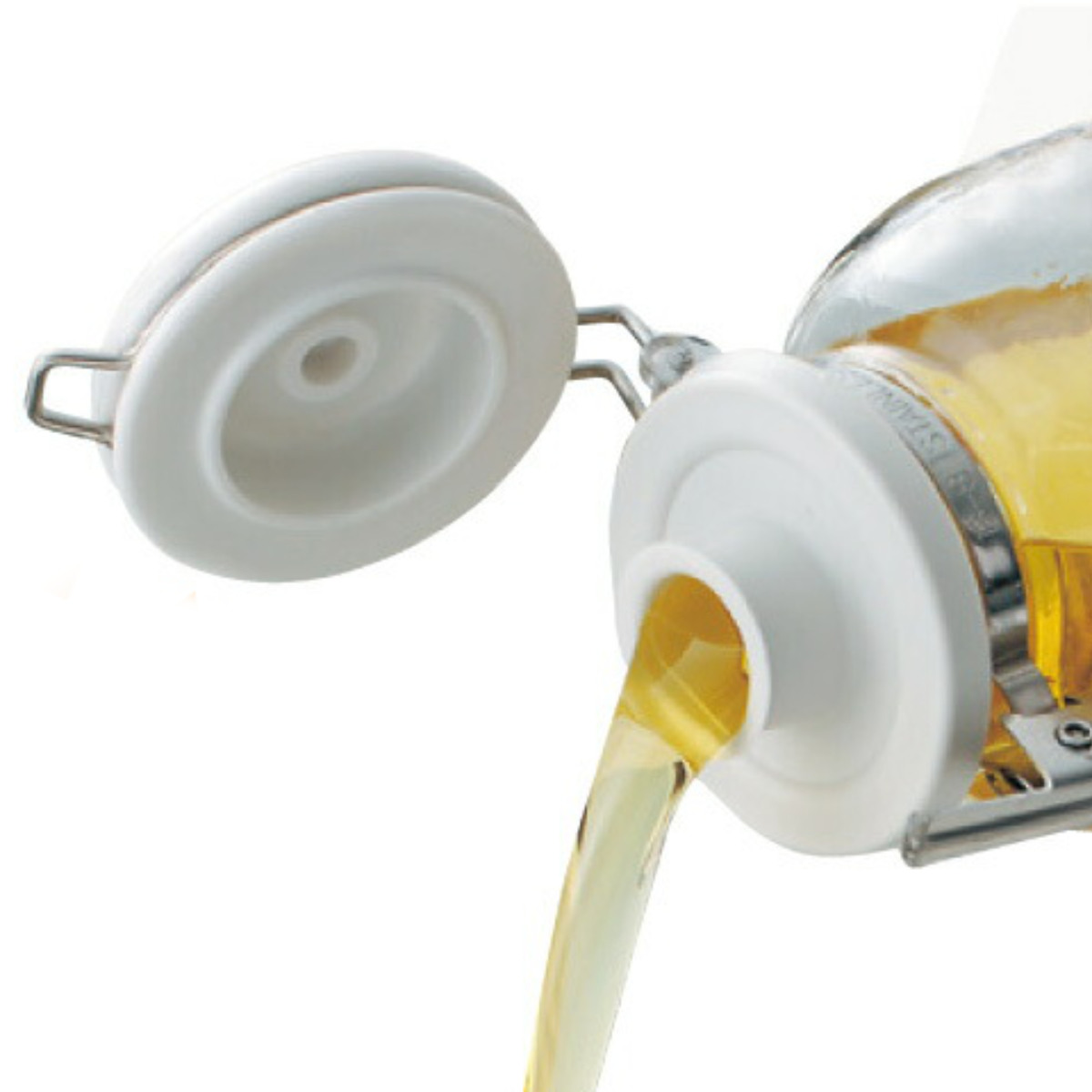 注ぎ口にはシリコンゴムを使用しており、キレがよく液だれしにくい設計です。ドレッシングやたれなどの液体調味料入れに最適です。