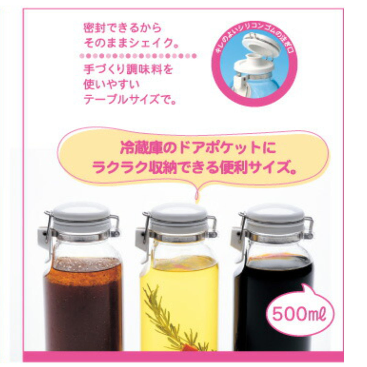 ●ドレッシング作りから、そのまま保存までできる便利なガラスボトルです。