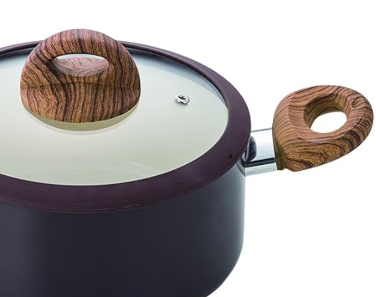 ブラックの本体に、ナチュラルな木目調ハンドルとツマミを組み合わせました。シンプルでありながら上品さがあり、長く使っても飽きのこないデザインです。