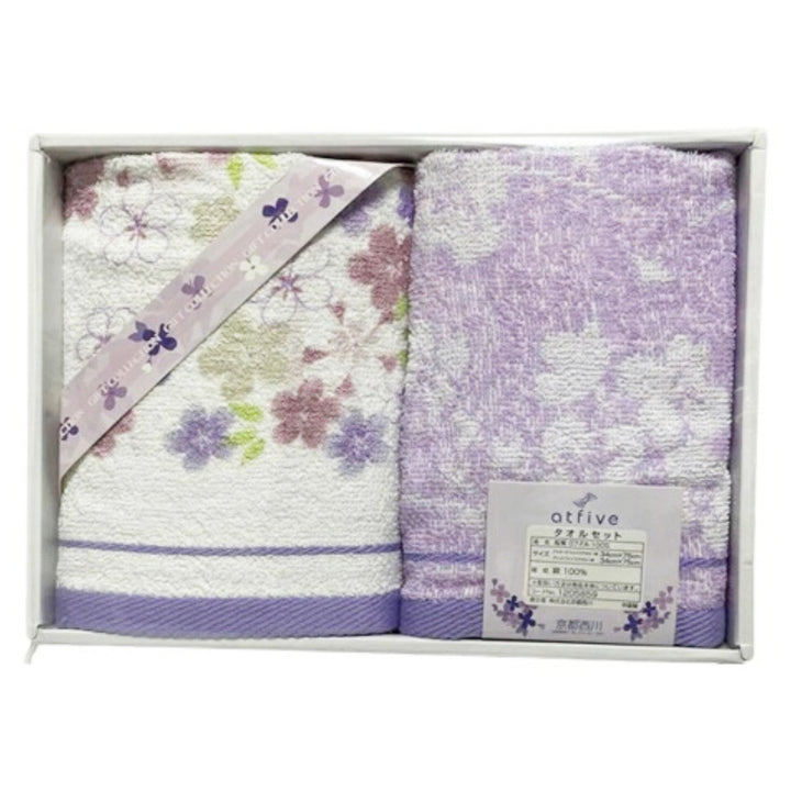 上品で可愛らしい花柄のフェイスタオルセットです。お歳暮などのギフトにおすすめです。ジャカードフェイスタオルと、プリントフェイスタオルが各1枚ずつ入っています。