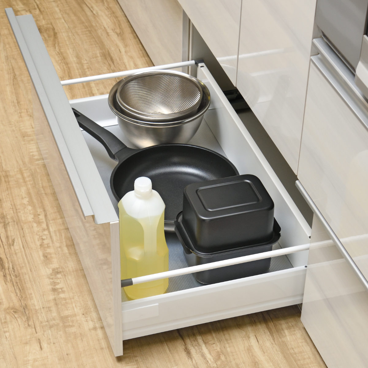 デッドスペースを作らず、引き出しにもすっきりと収まります。