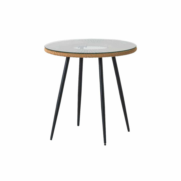 人工ラタンとガラス、ブラックスチールの組み合わせが絶妙なサイドテーブルです。ラタン調のデザインが置くだけでリゾート感を演出。ゆったりとした癒しのひとときをお過ごしいただけます。天板のガラスが涼しさと抜け感を生み、スリムなスチール脚がすっきりとした印象を与えるため、圧迫感が少なく、お部屋も広々と感じられます。