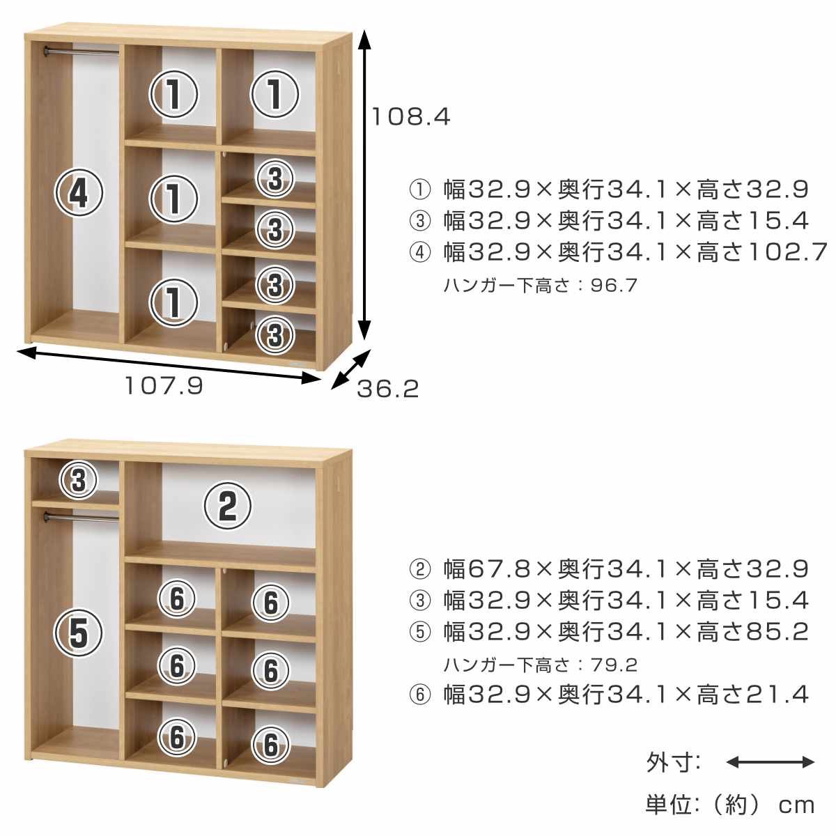 スクエアシェルフ 幅107.9cm 組み替え ハンガーバー付 日本製