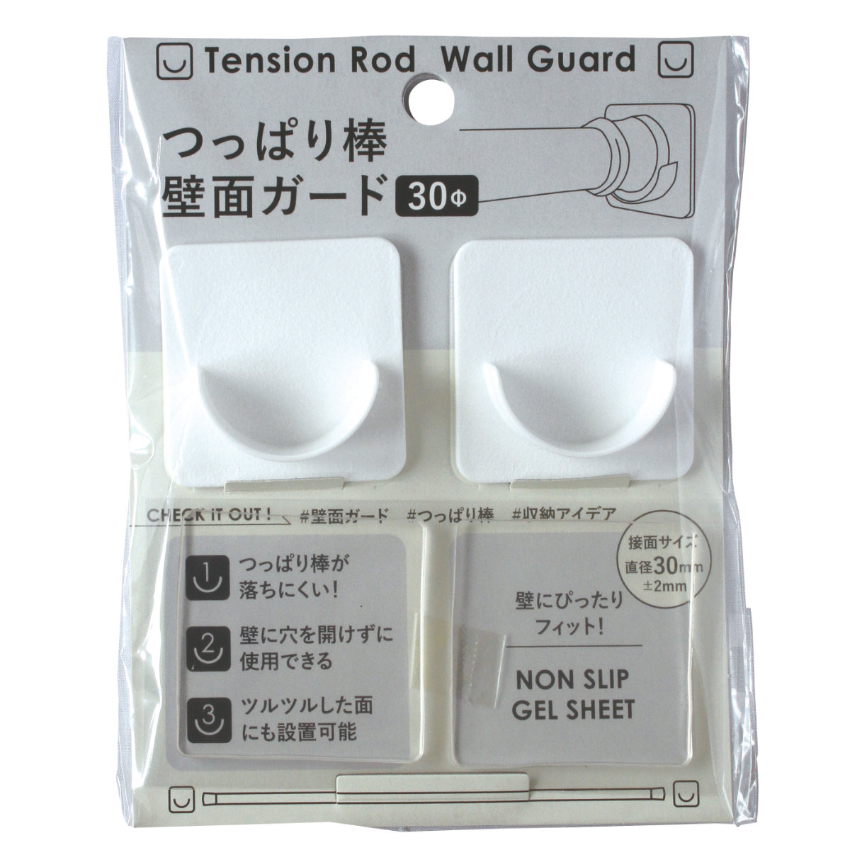 ●つっぱり棒と壁の間に設置することで、壁へのキズを防ぎ、つっぱり棒のズレを軽減します。
