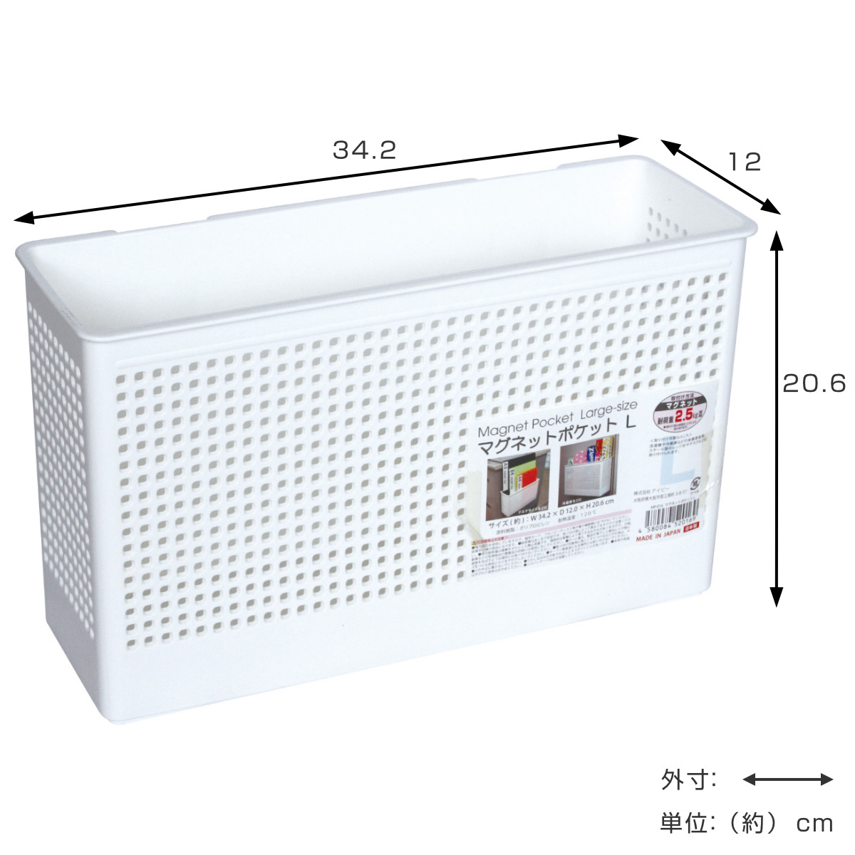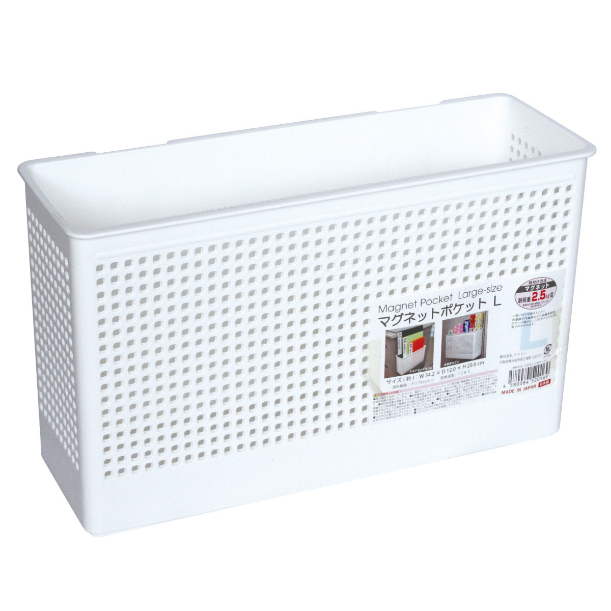 冷蔵庫の横や洗濯機に簡単に取り付けられるマグネット付きの収納ポケットです。キッチン、ランドリー、洗面所、デスク周りに手軽に新しい収納場所を増やせます。