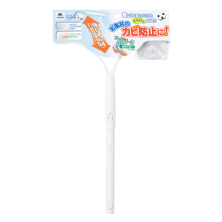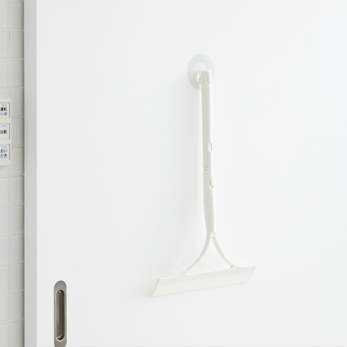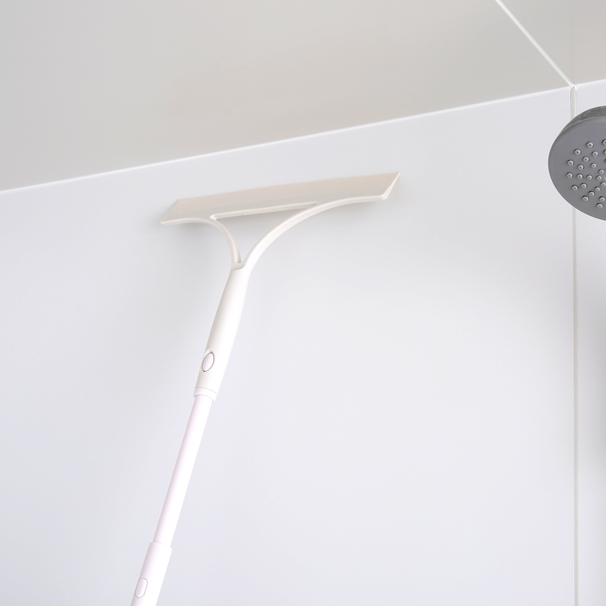最長約54cmまで伸びるので、壁や天井はもちろん、床・浴槽のスミまで楽に水切りできます。軽くて傷つきにくい樹脂製。伸縮ハンドルを外してハンディとしても使えます。