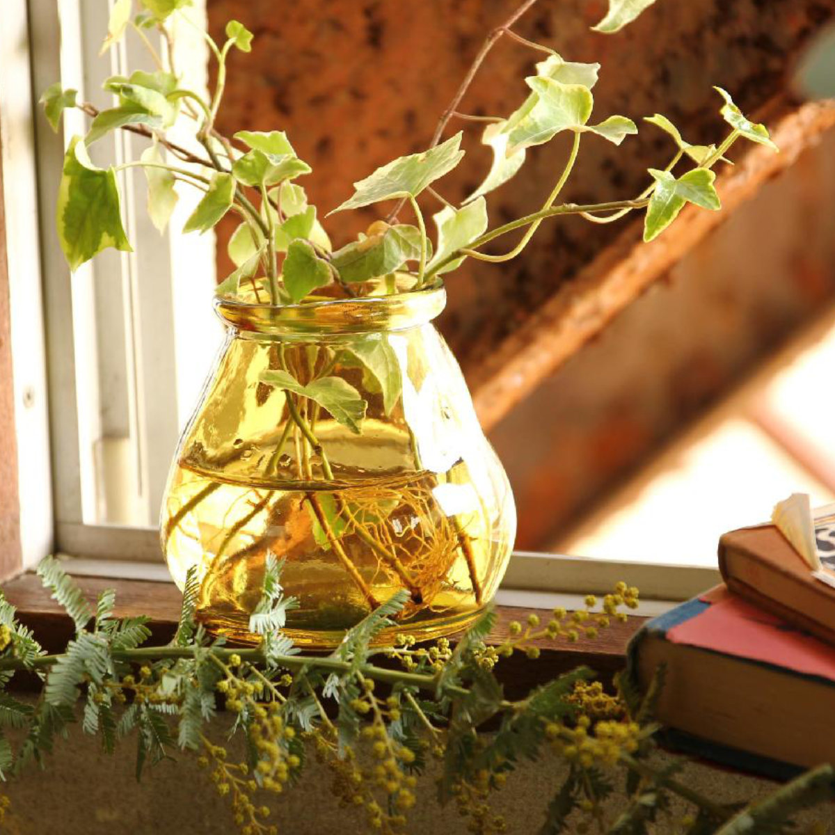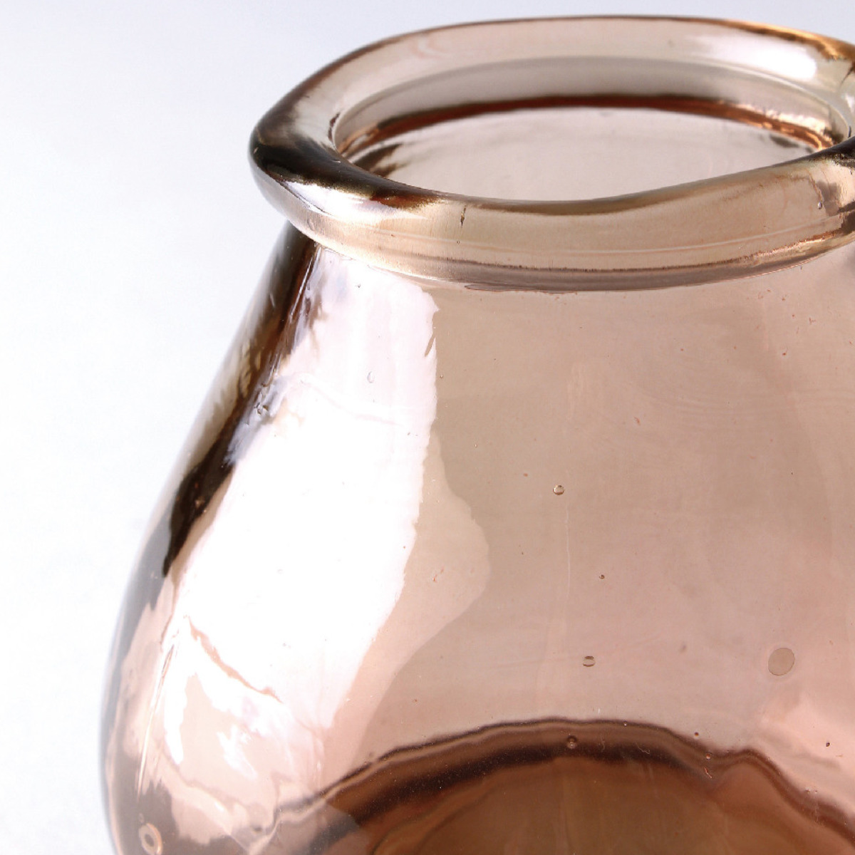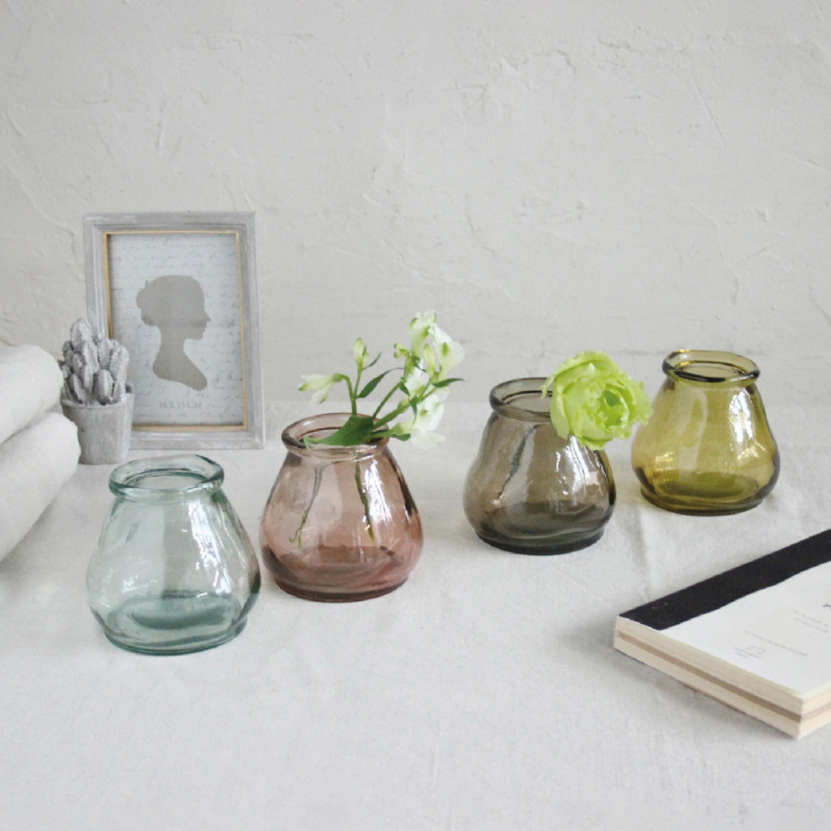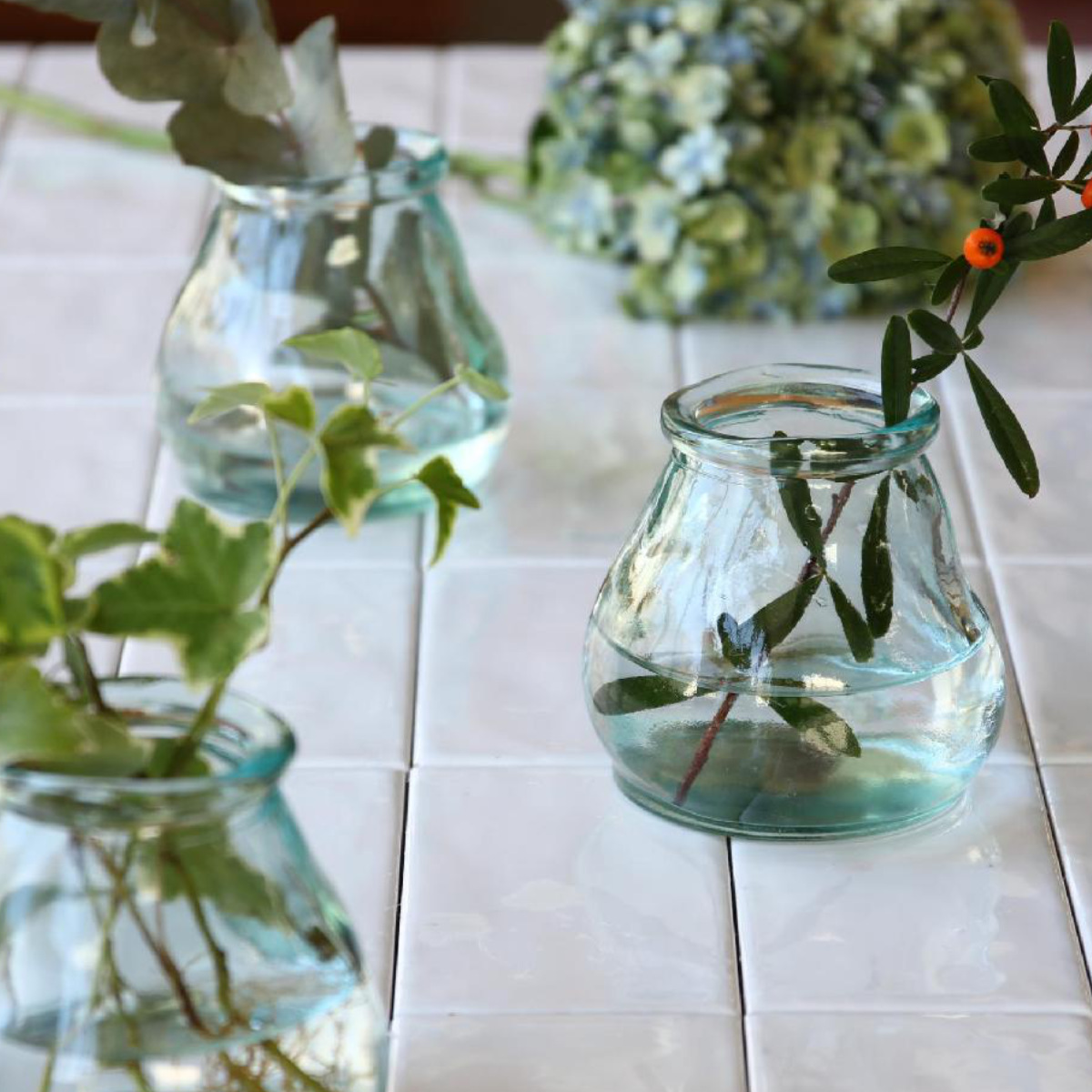 シンプルで無駄のないフォルムは、どんな空間にも自然に溶け込み、花やグリーンの美しさを引き立てます。透明感のあるガラスにリサイクル特有の風合いが加わり、光の加減で表情が変わるのも魅力。小ぶりで扱いやすいサイズ感は、一輪挿しやドライフラワーにもぴったり。玄関、窓辺、デスクなど、日常のさりげない場所に心地よい彩りを添えてくれます。