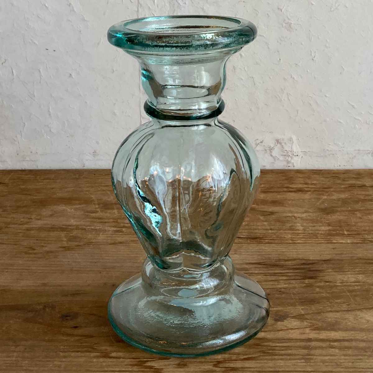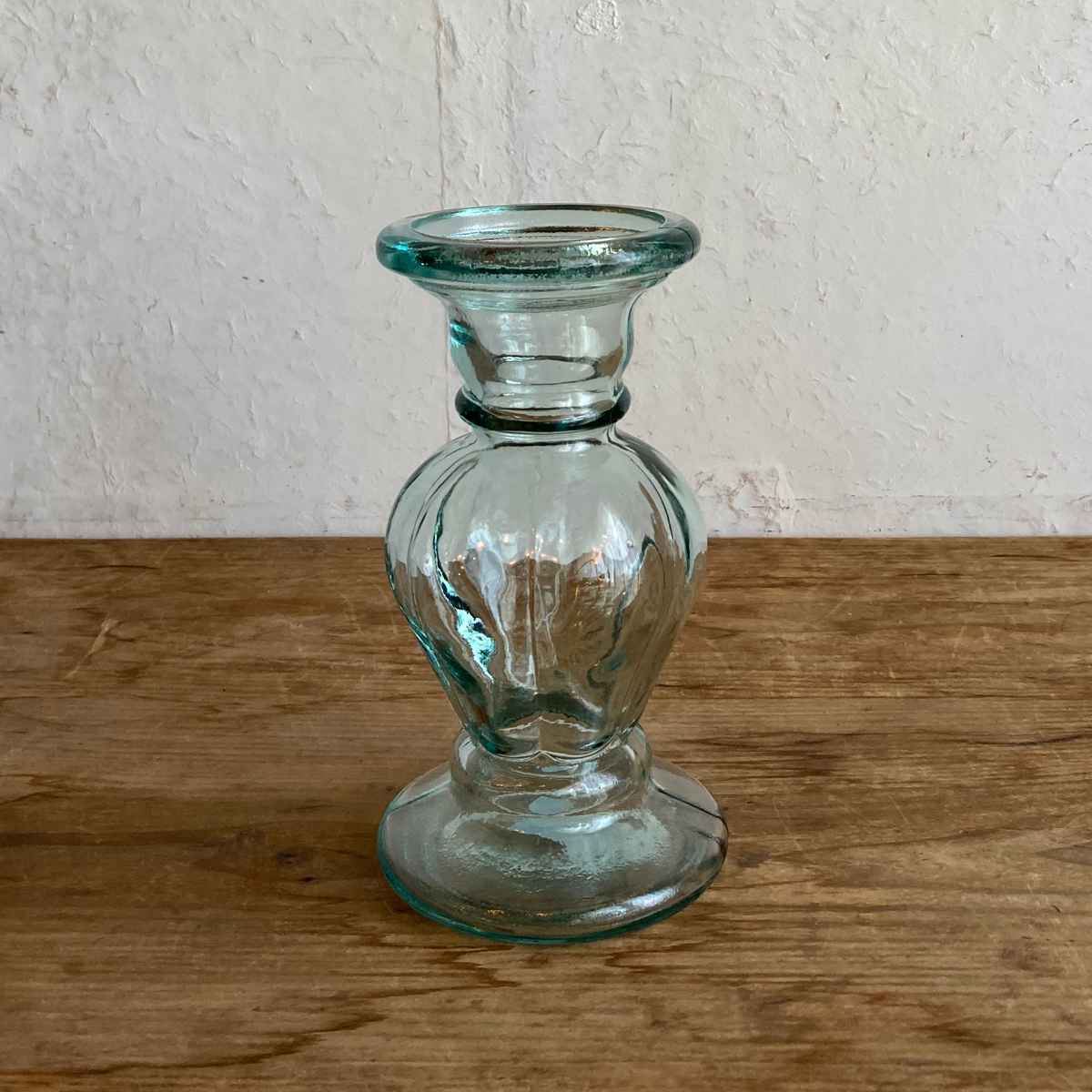 スペイン生まれのリサイクルガラスベースは、独特の揺らぎや気泡を含んでいて個性豊かな仕上がりです。窓辺やテーブルにさりげなく置くだけで、雰囲気のある空間を演出できます。
