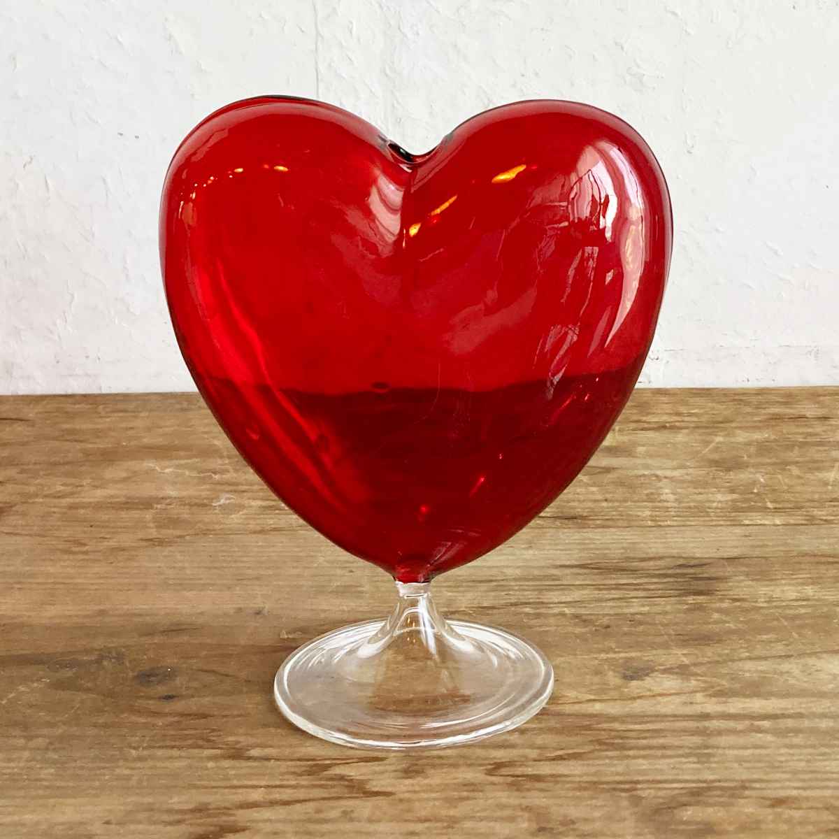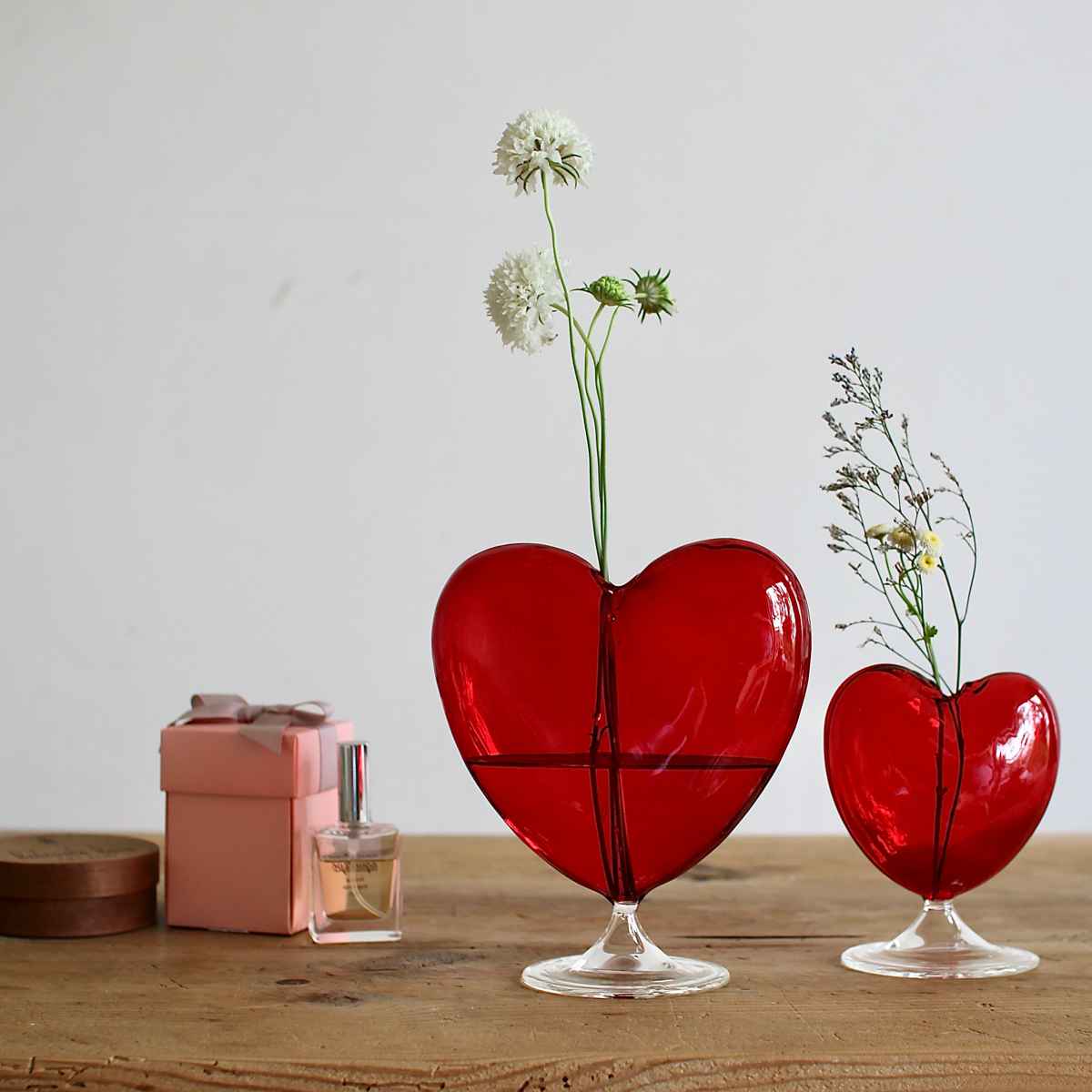 鮮やかなレッドカラーがきらめく ハート型フラワーベース