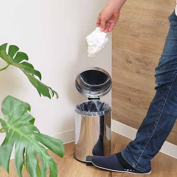 ペダル式なので、手が汚れていたり両手がふさがっていても簡単にゴミを捨てられます。またステンレス製なのでお手入れしやすく清潔に保てます。