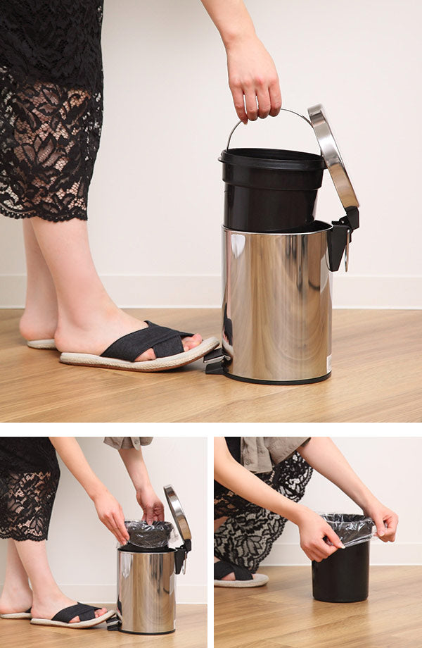 内バケツ付きなので、ゴミがいっぱいになったときのゴミ捨てもラクです。内バケツは汚れたら丸洗いでき、いつでも清潔にお使いいただけます。