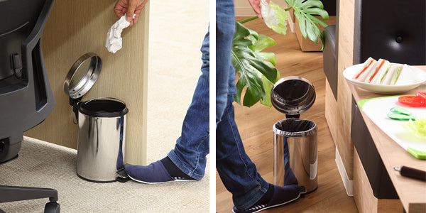 キッチンに置いても ペダル式なので調理中など手がふさがっている時に便利です。 |